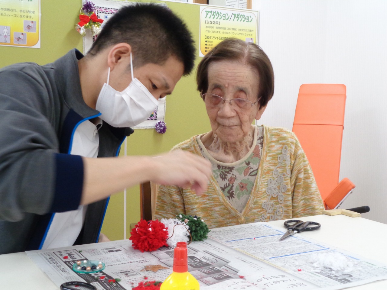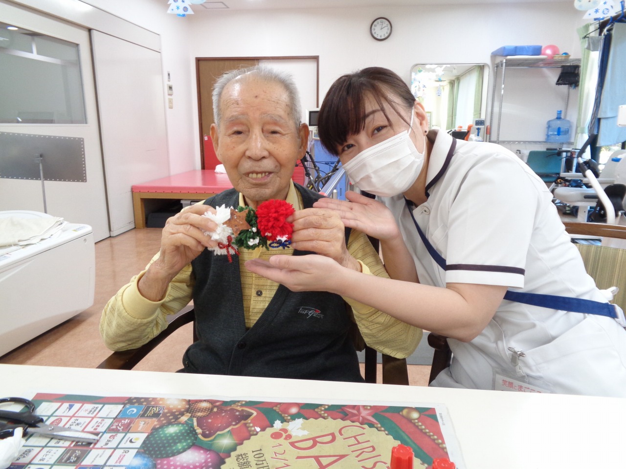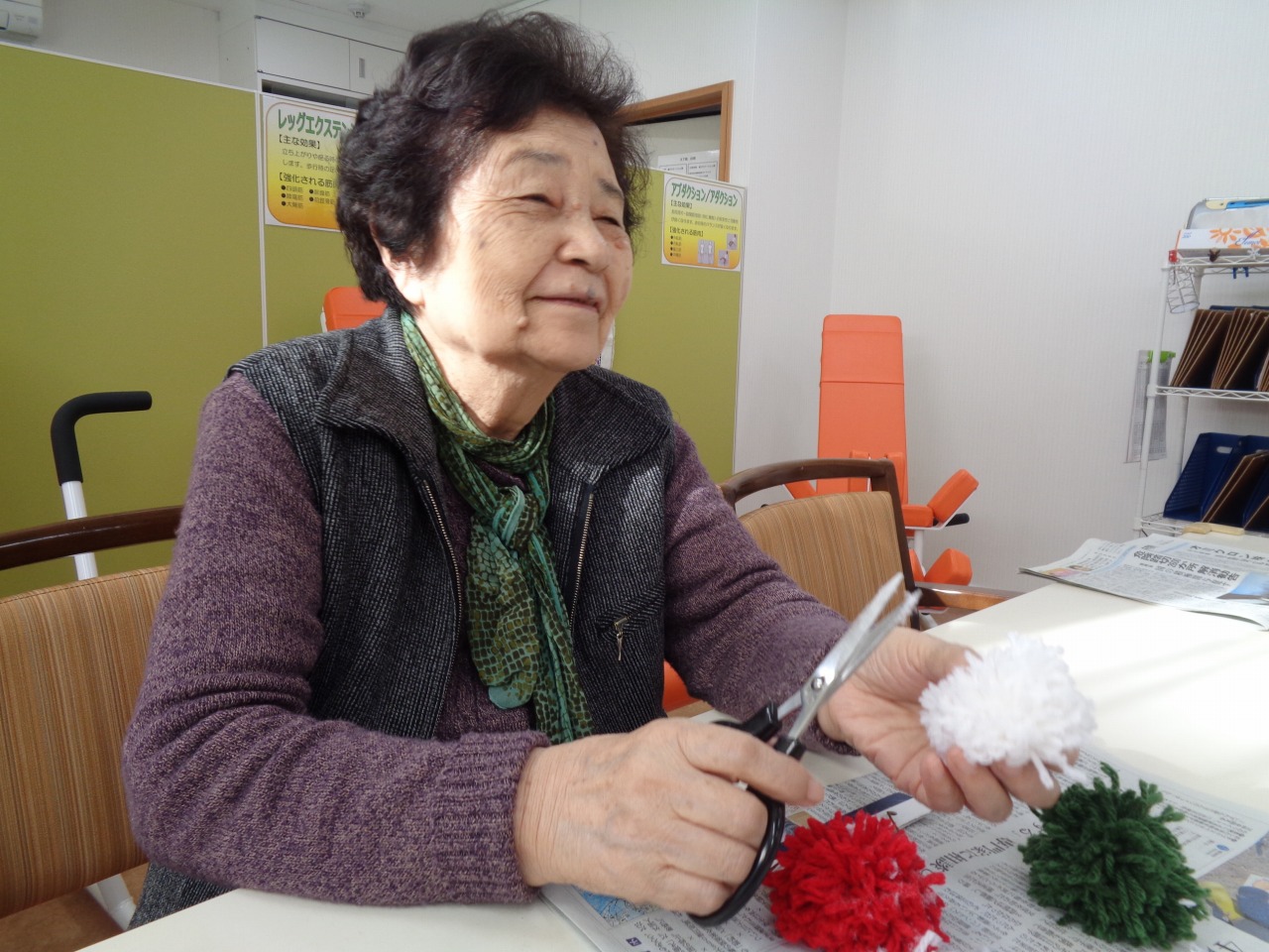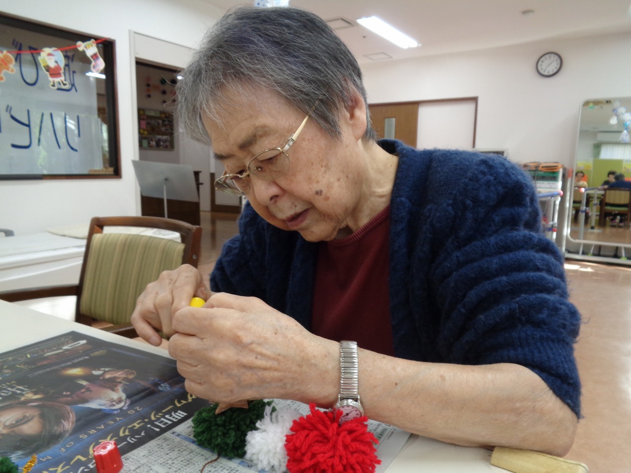 12月1日(水)、本日の手作りクラブは先週作っていただいた毛糸のポンポンを使って「クリスマスの飾り」を作っていただきました♪