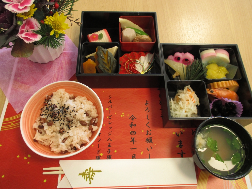 昼食には、おせち料理とお雑煮を召し上がって頂きました。
