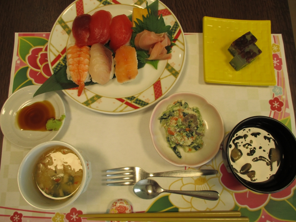 昼食には、皆様からのリクエストも多数あった、「にぎり寿司」を召し上がって頂きました。