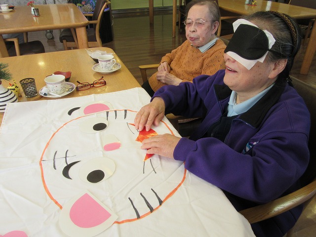 羽子板にコマ等をご用意しましたが、まずは福笑い。