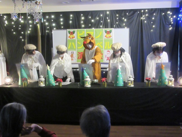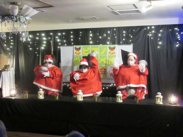 午後の職員による余興はダンス、ハンドベル、ピアノ演奏です。