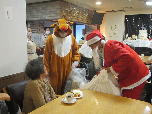 おやつはシャインマスカット、イチゴ、ブルーベリーやサンタのお菓子、