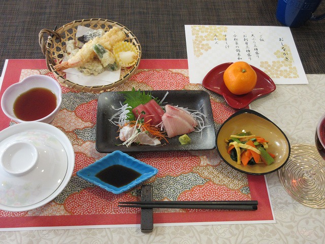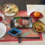 昼食時にはお刺身と天ぷらの和食膳をお召し上がりいただき、