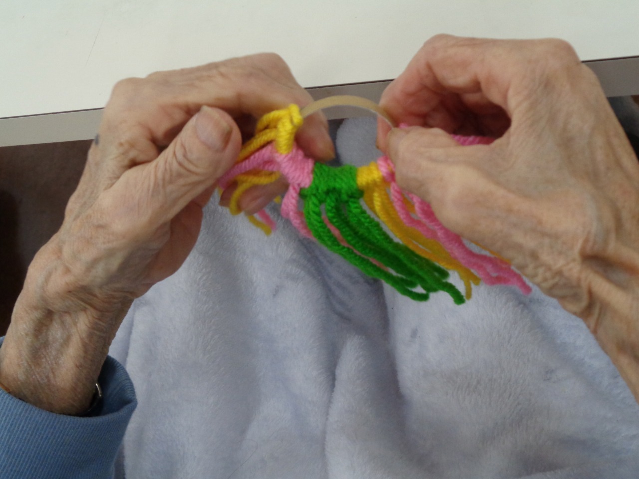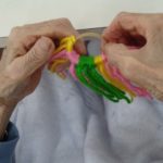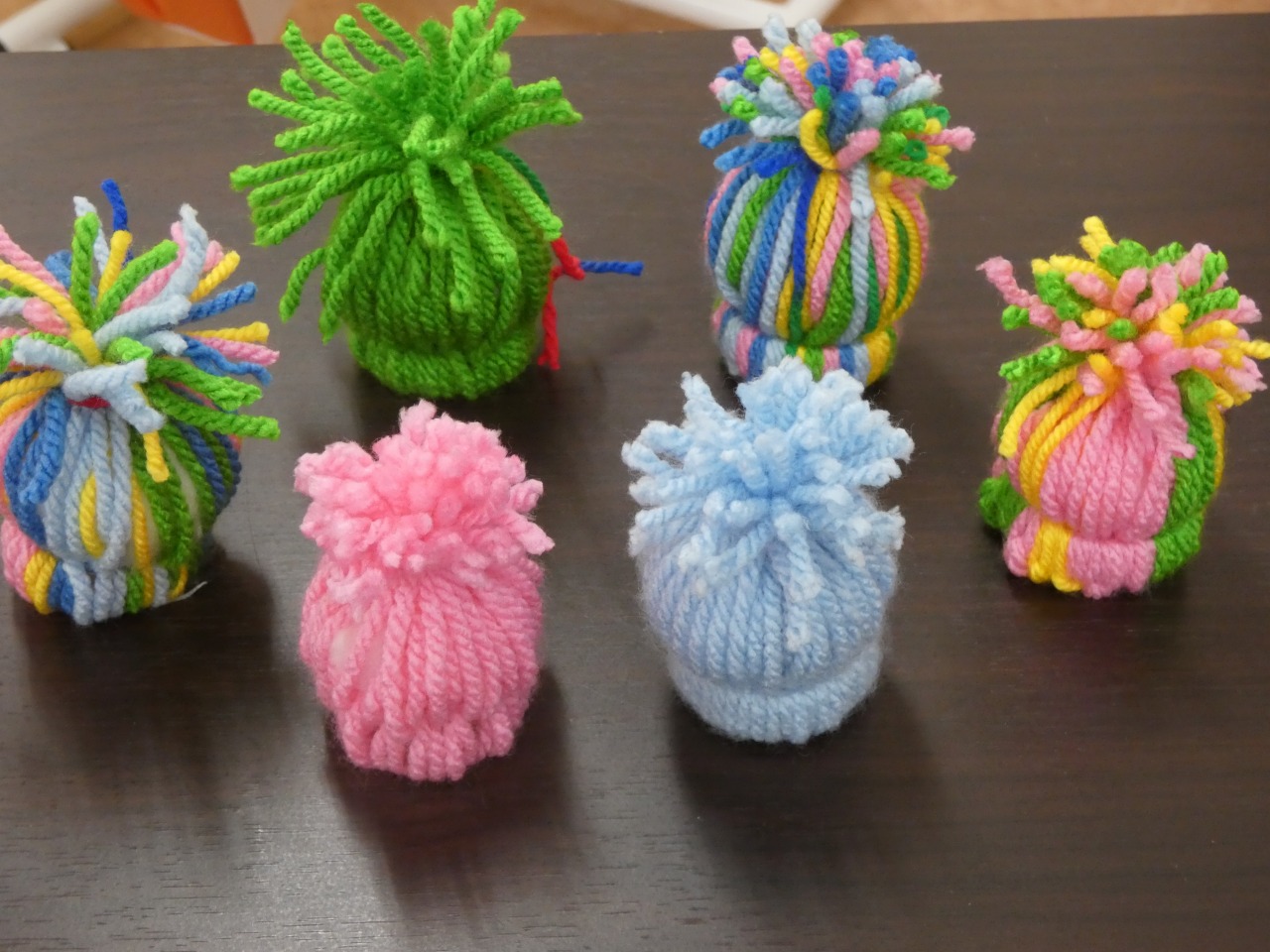芯に毛糸をくぐらせていく作業が沢山あり、