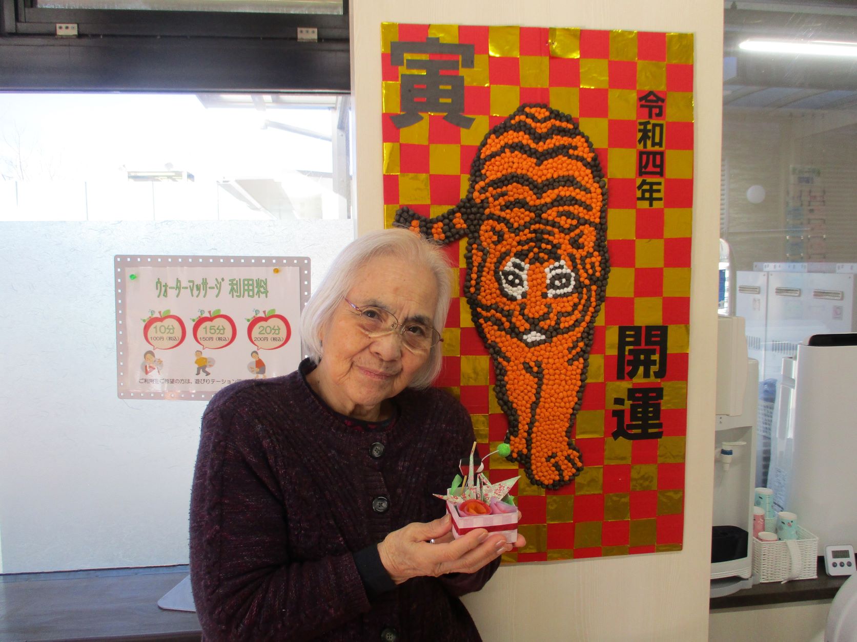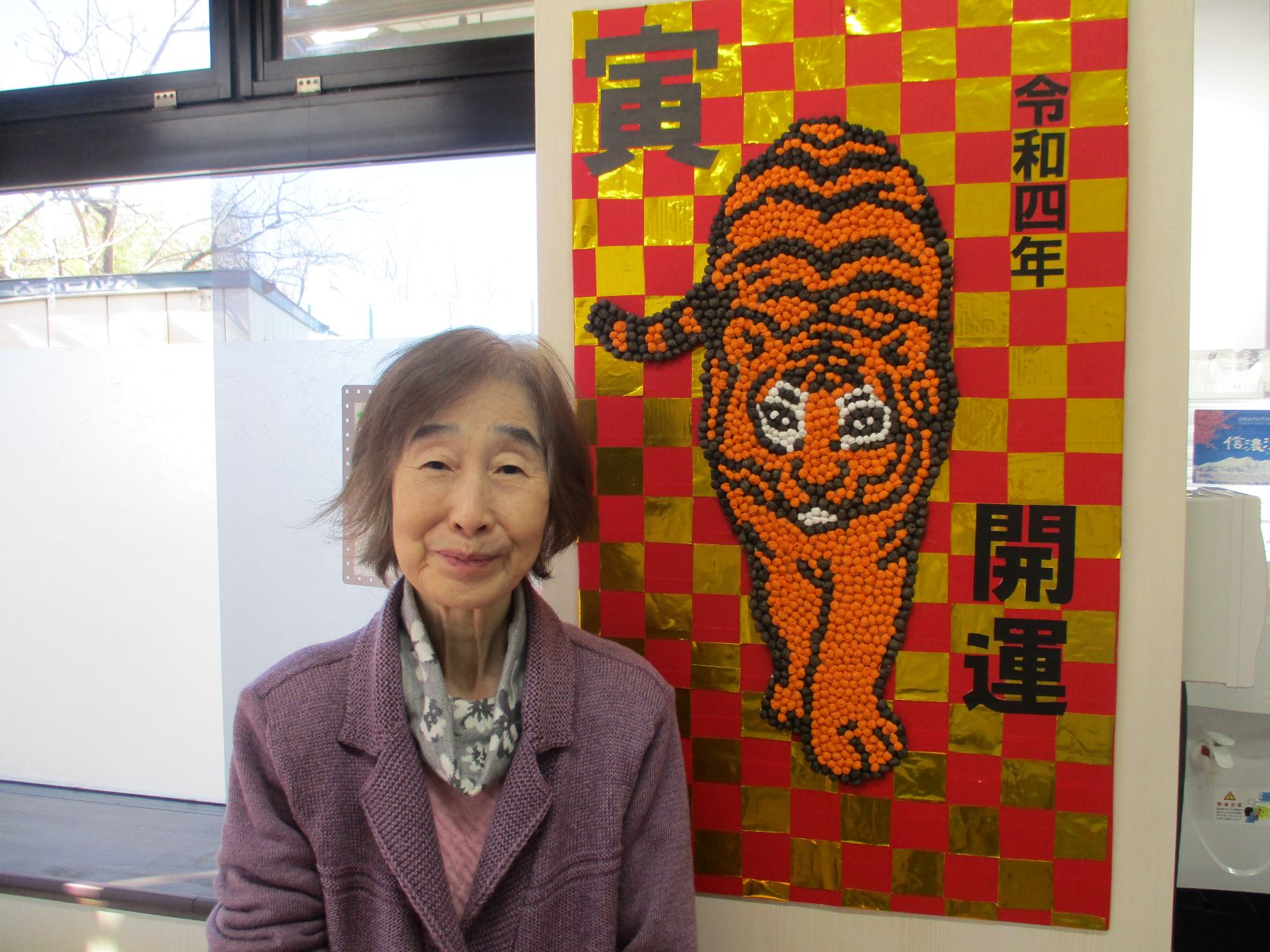 今年の干支「寅」の壁面飾りが出来上がりました。