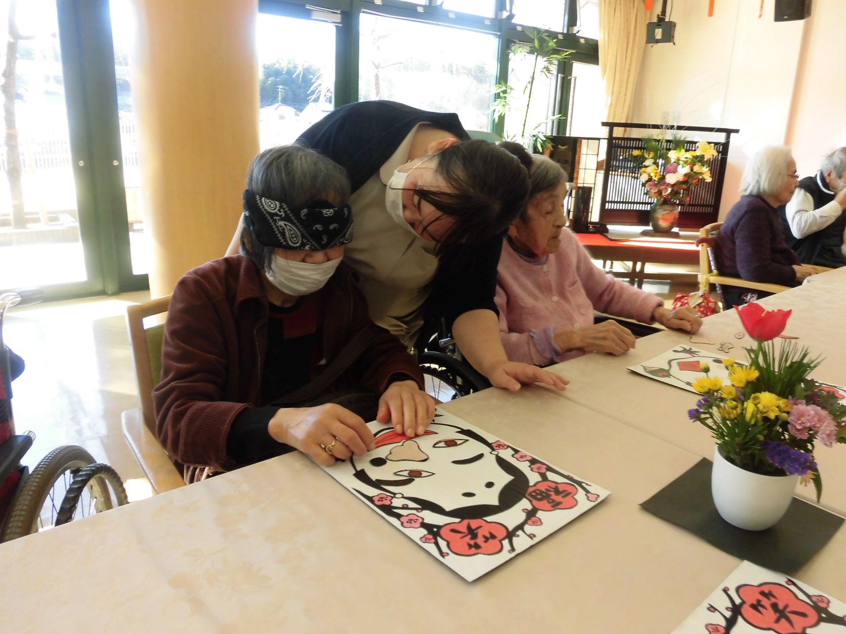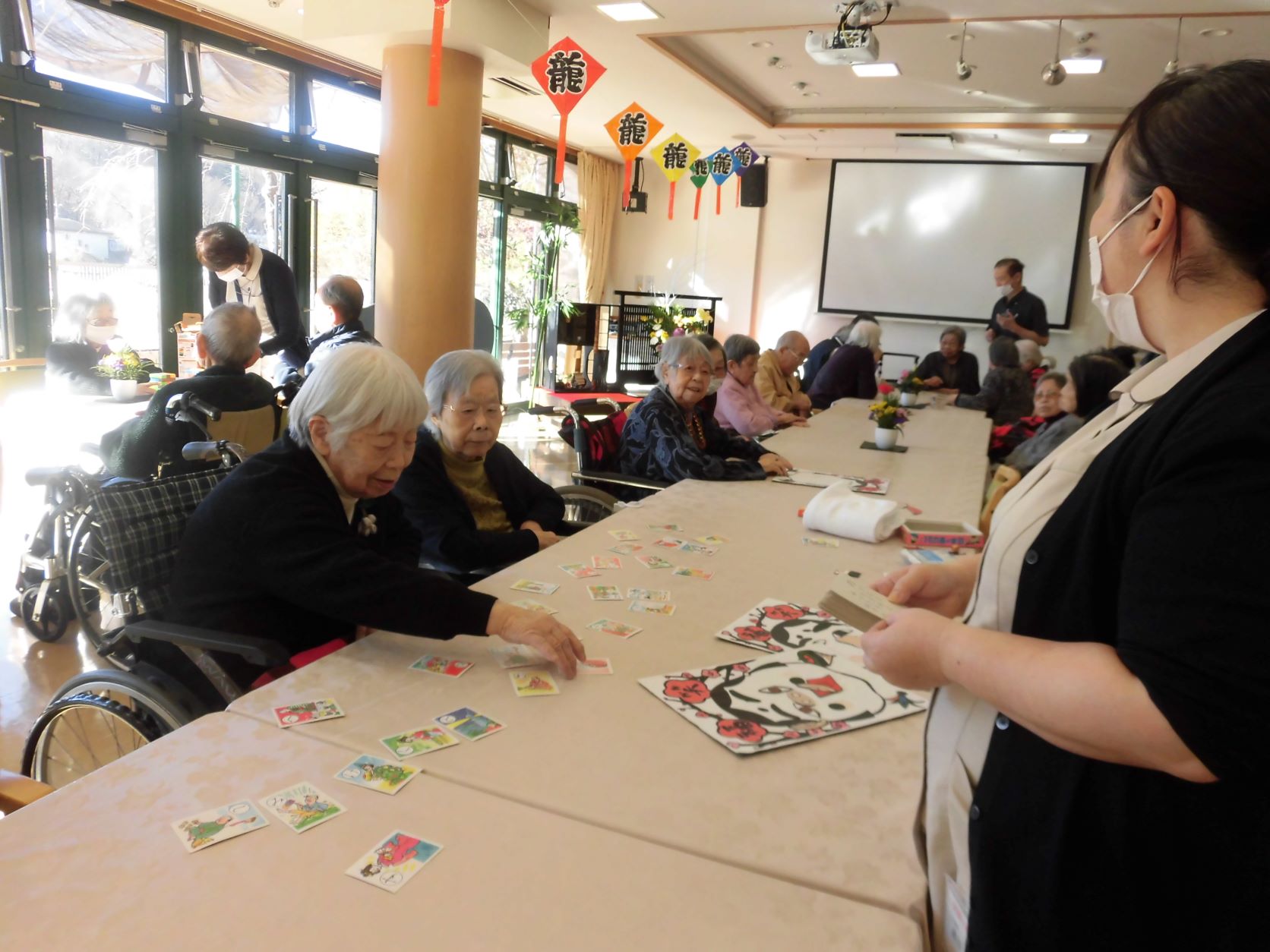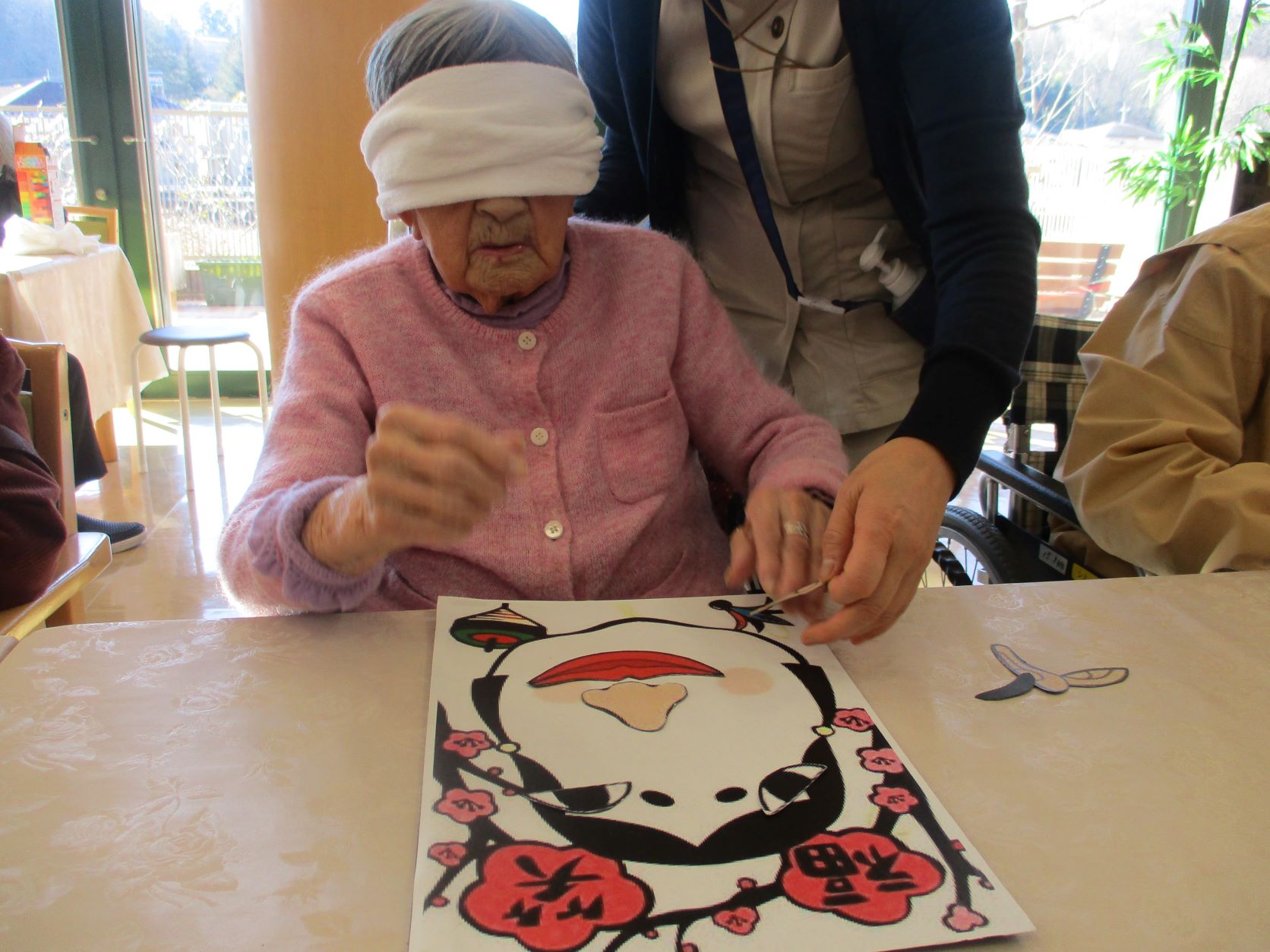 かるたは大人数で盛り上がり、福笑いはうまくできないのが