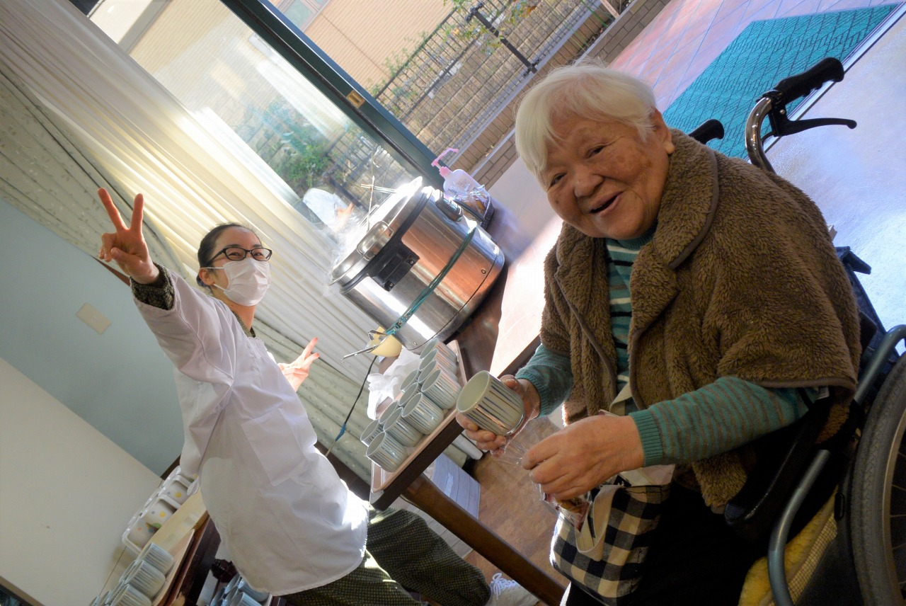 おやつには、温かい甘酒をお菓子と共に召し上がっていただきました♬