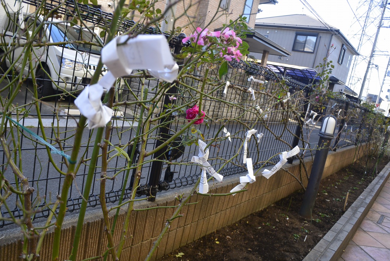 引いたおみくじは、神仏と縁を「結ぶ」ために境内(テラス)に結びます。