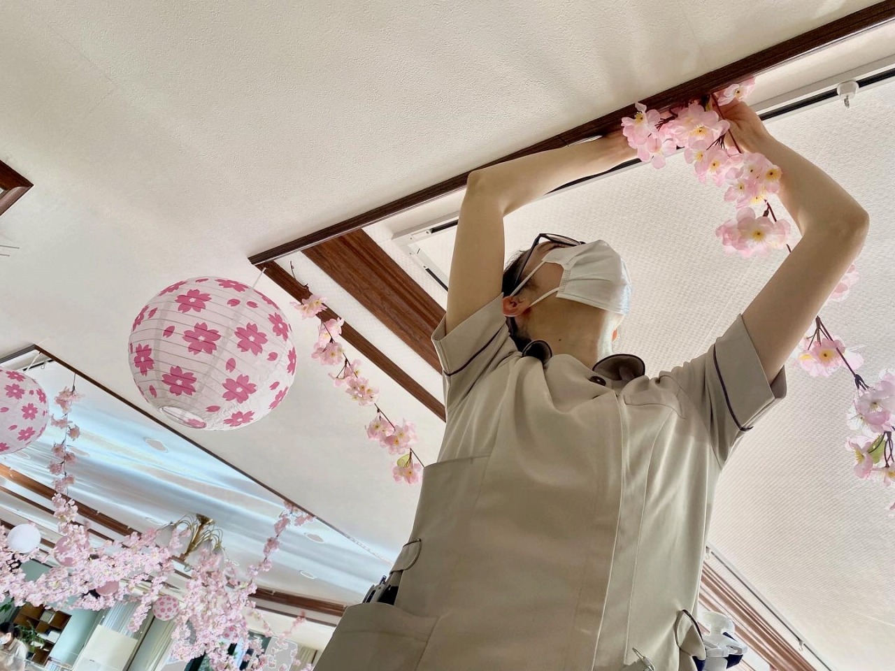 シルバービレッジ日野のホールでは一足早く桜が満開です!