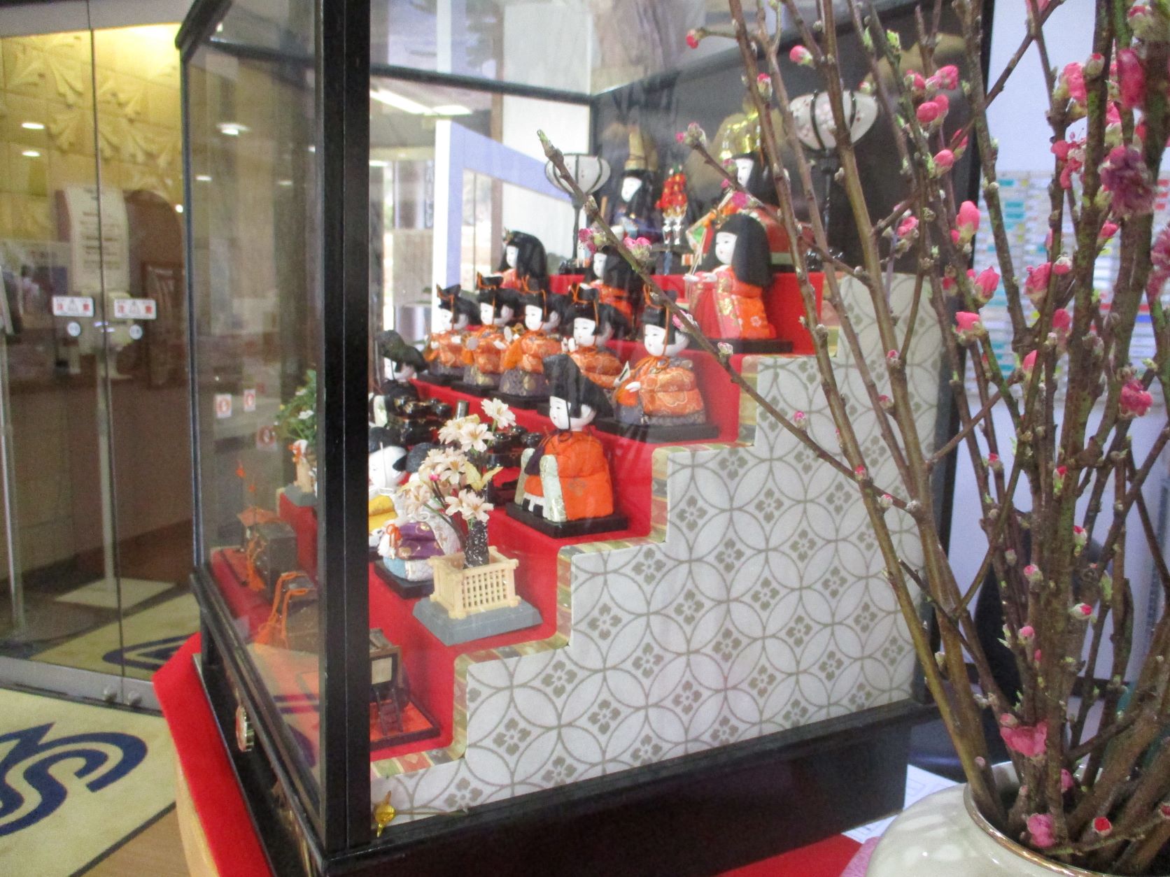 八王子西のお雛様の横には、桃の花を飾らせていただきました🌸