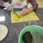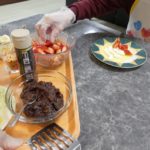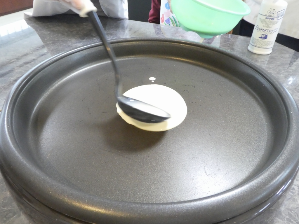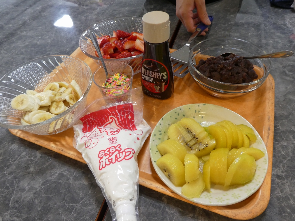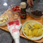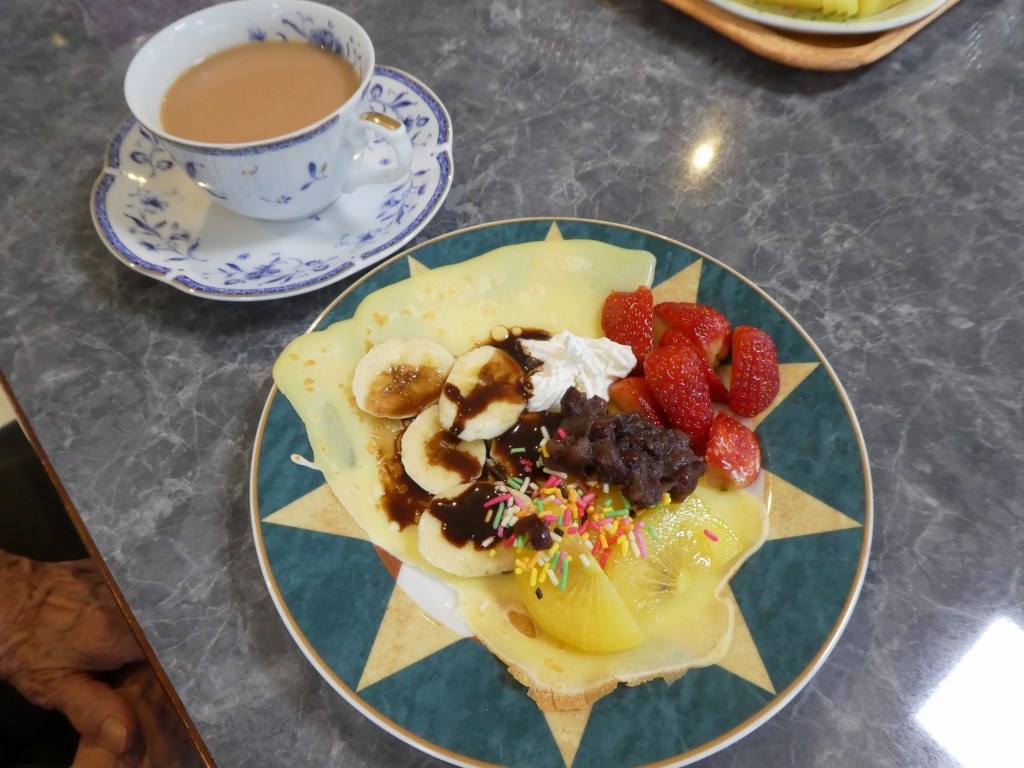 クレープ生地を焼いて、フルーツを切って、生クリーム・あんこ等