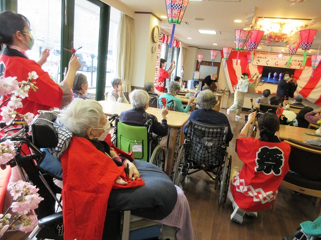 午後には職員がよさこい鳴子踊りを踊り、ご入居者の方々にも