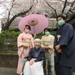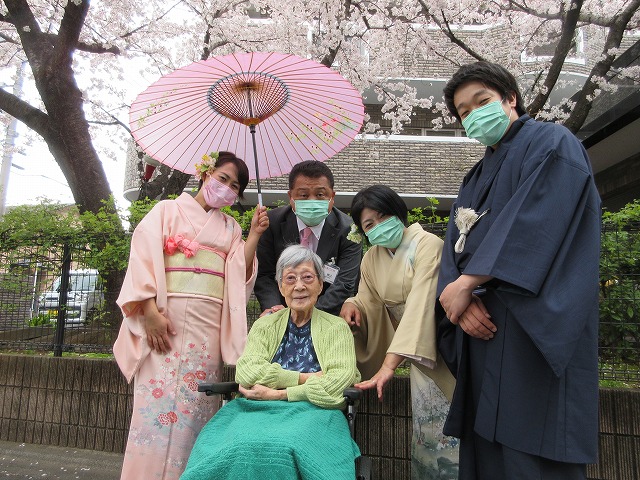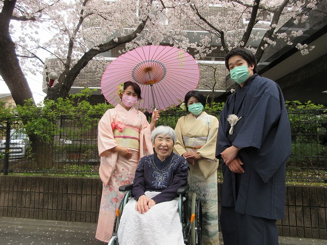施設外の桜をご覧になり「すごい!きれいだね!本当にいいものだね。」等