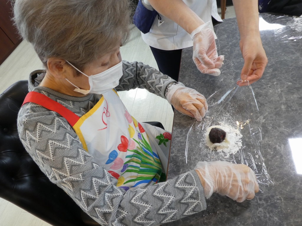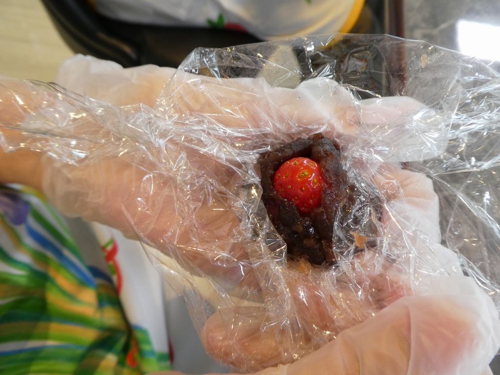 その中に粒あんで包んだ苺を入れ、皆様とてもお上手に