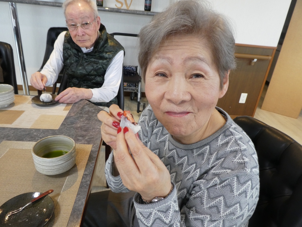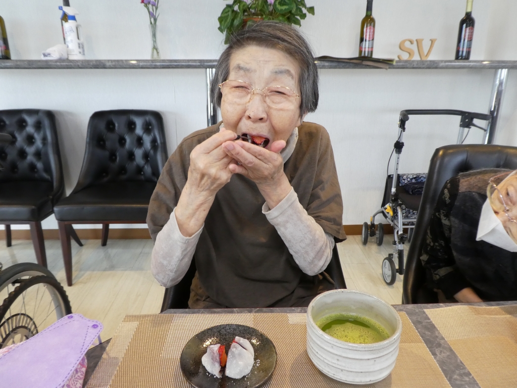 職員が立てたお抹茶と一緒に召しあがって頂き、