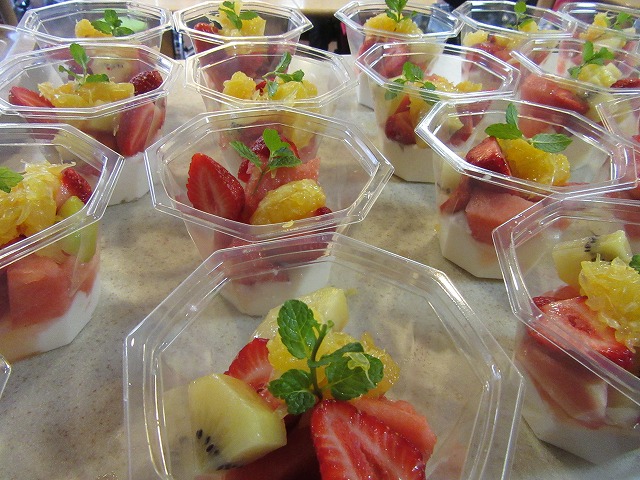 茶話会がありました。今回は杏仁豆腐とフレッシュフルーツです。