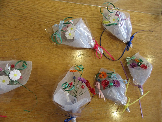 お好きなリボン・ビーズを選んでいただき、花束にして頂き