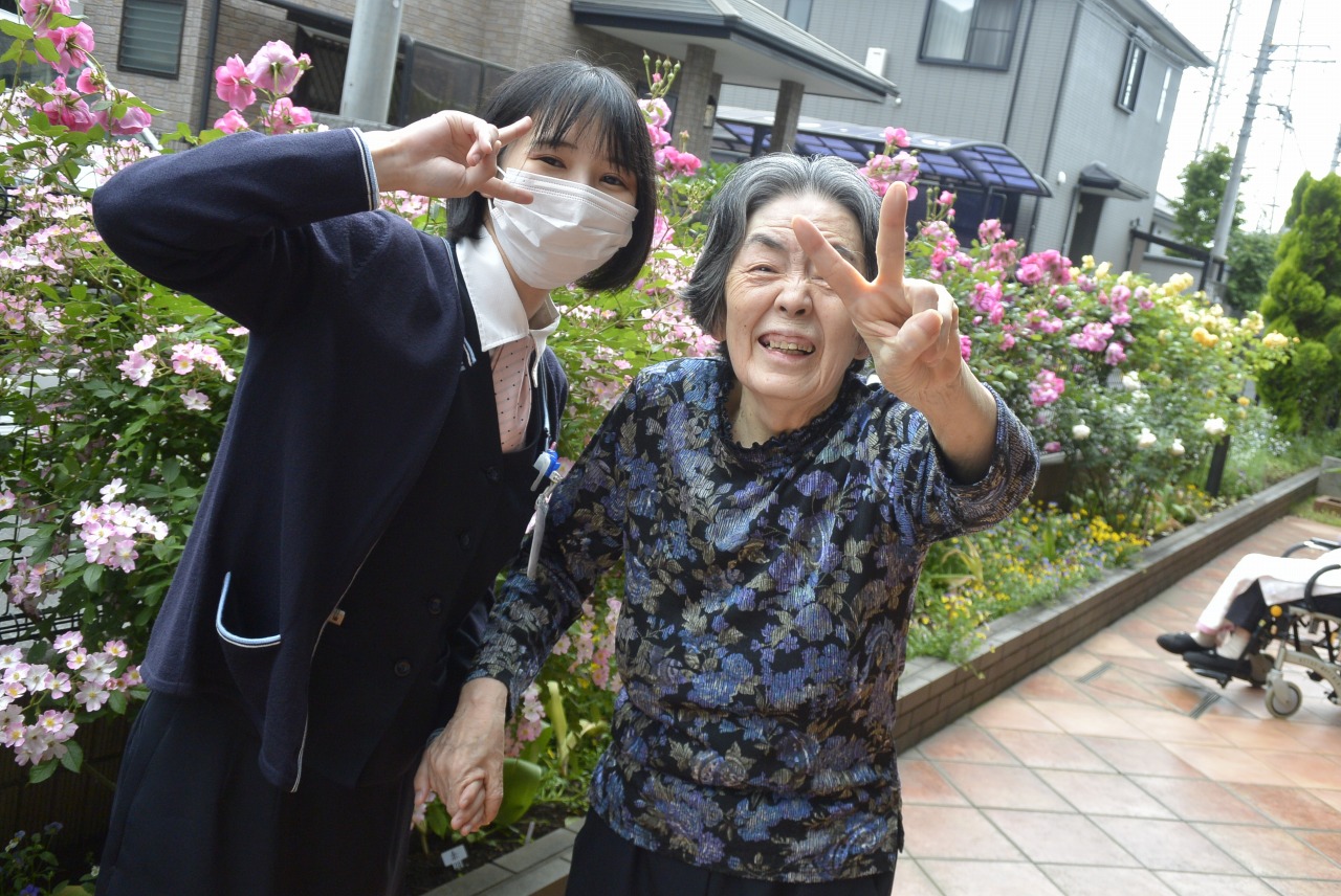 色鮮やかなバラが見頃を迎えており、ご入居者の皆様も楽しそうに愛でていらっしゃいました。