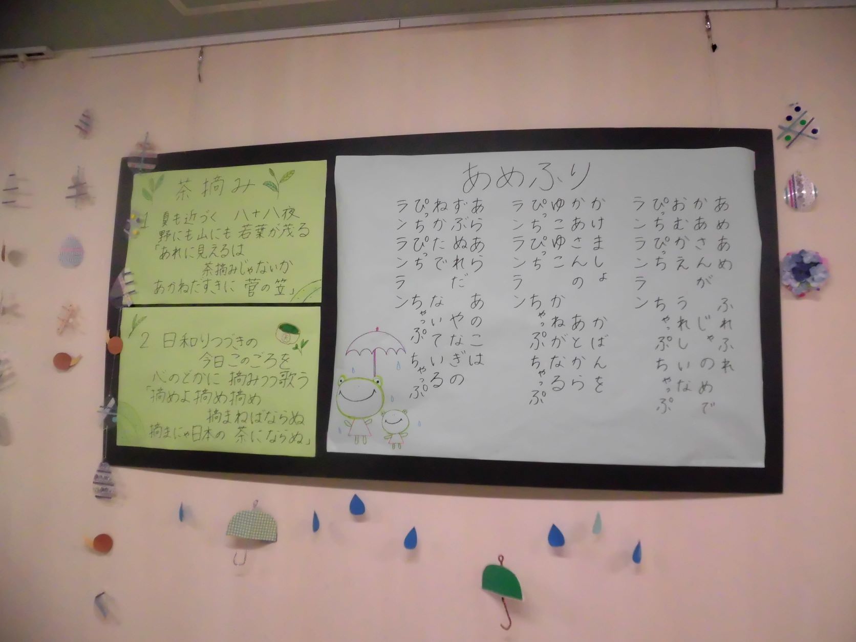 という事で「あめふり」「茶摘み」の歌を飾らせていただきました。
