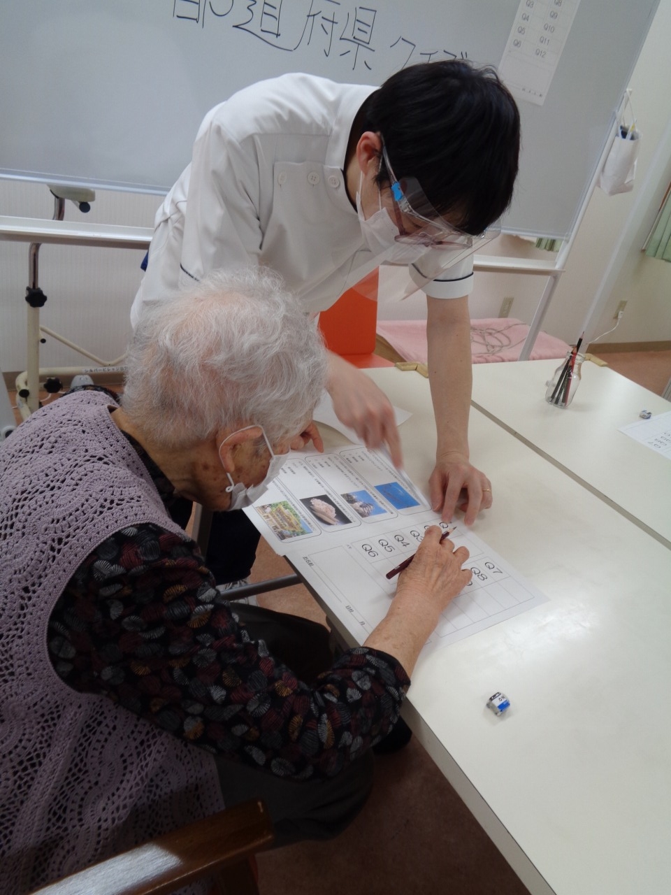 本日は日野リハビリ室にて学習クラブを開催し、都道府県クイズに挑戦していただきました。