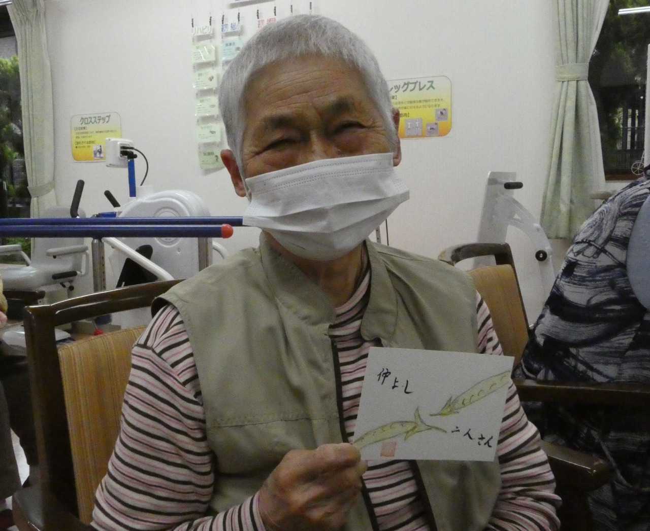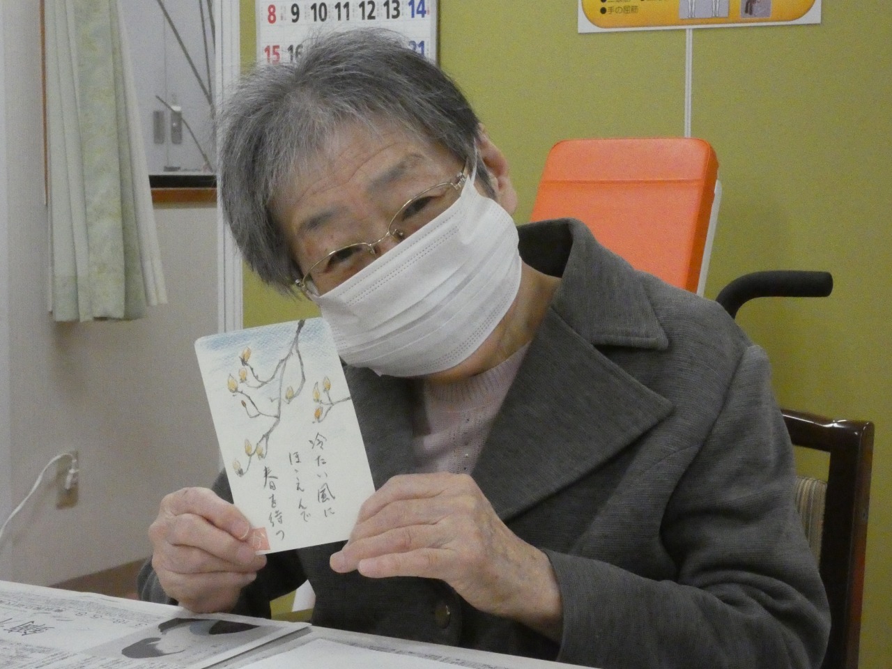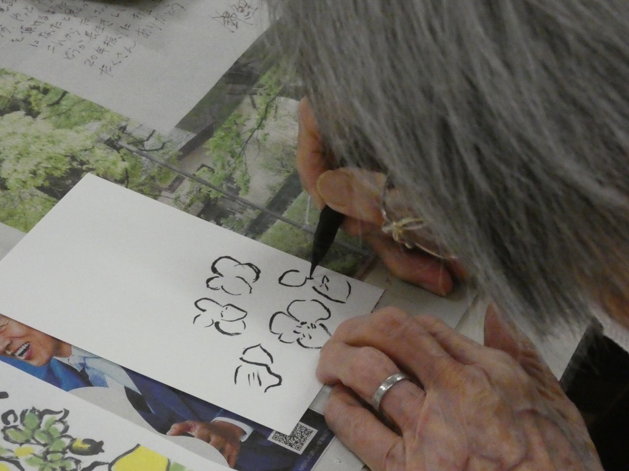 お好きな見本を選んで、ハガキに描いたら色を付けます。
