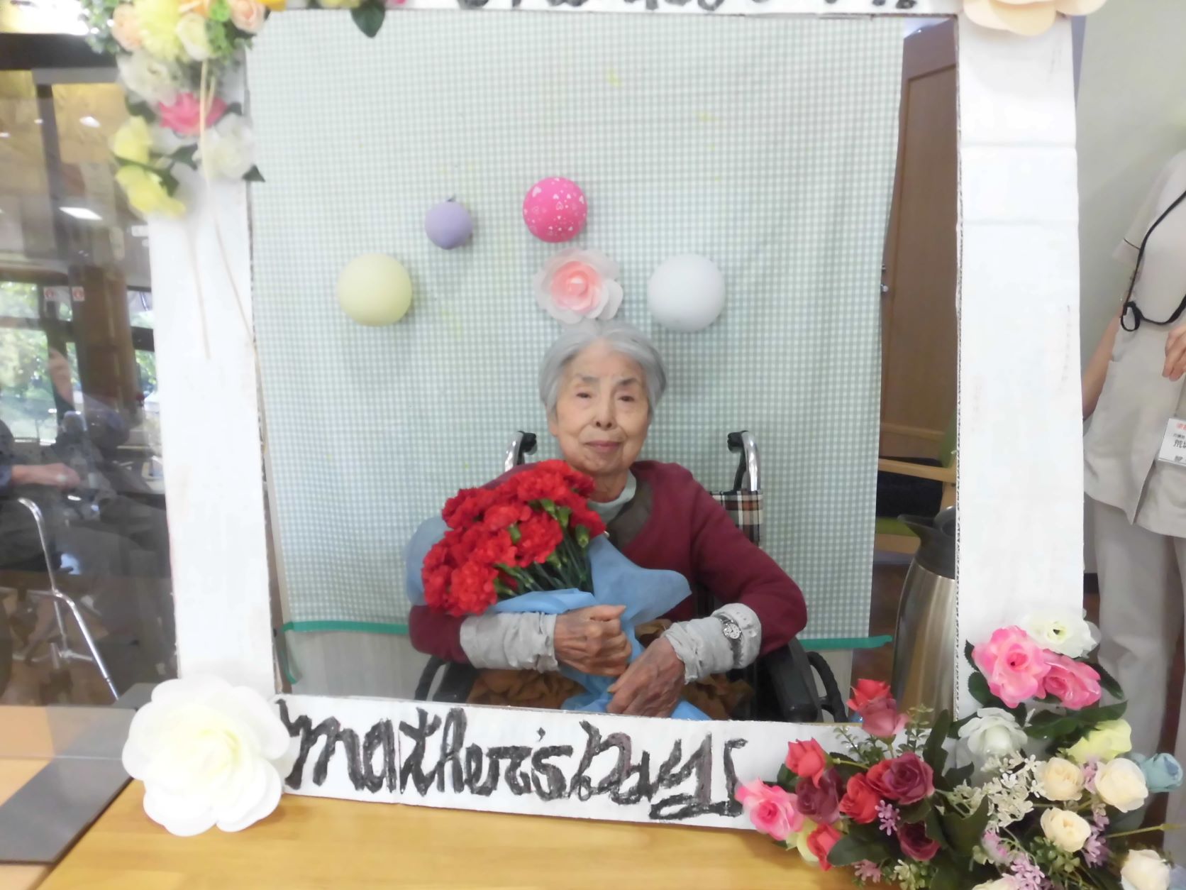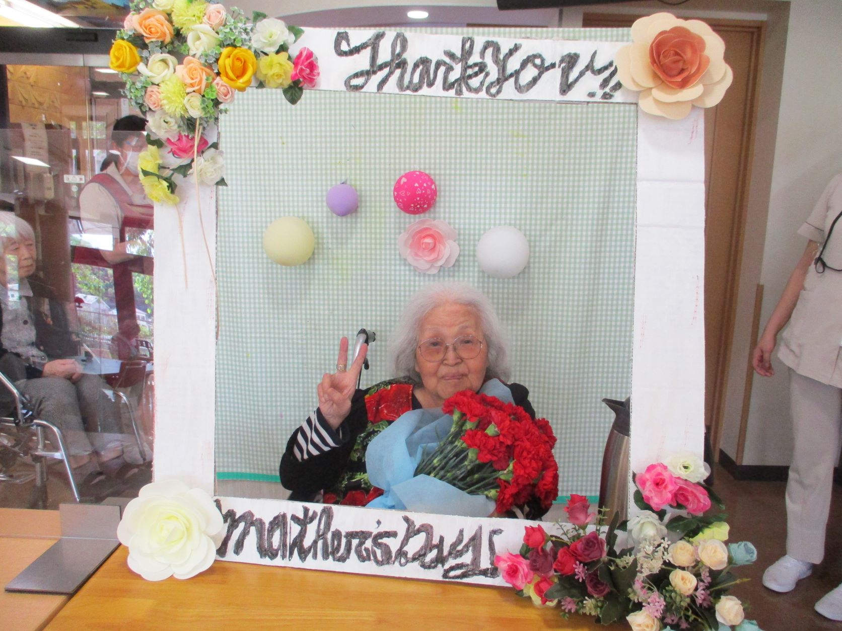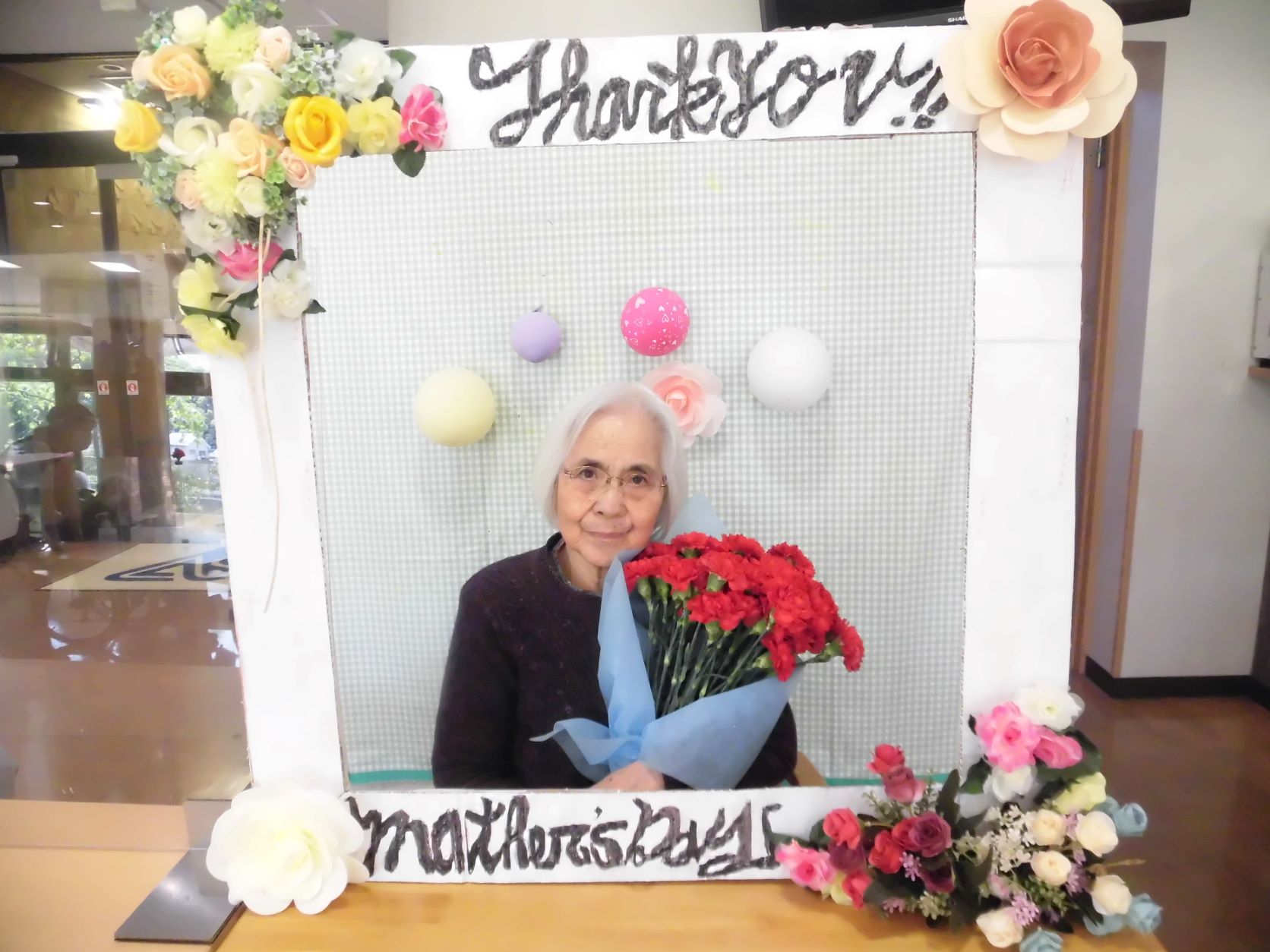 午後では、手作りホトフレームでお一人お一人記念撮影。カーネーションもプレゼント♪