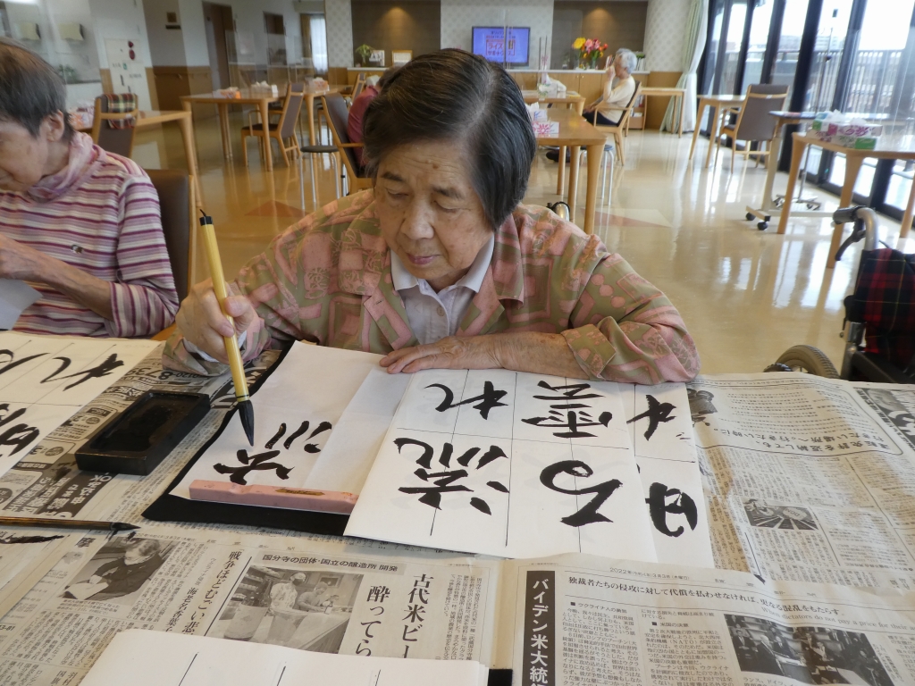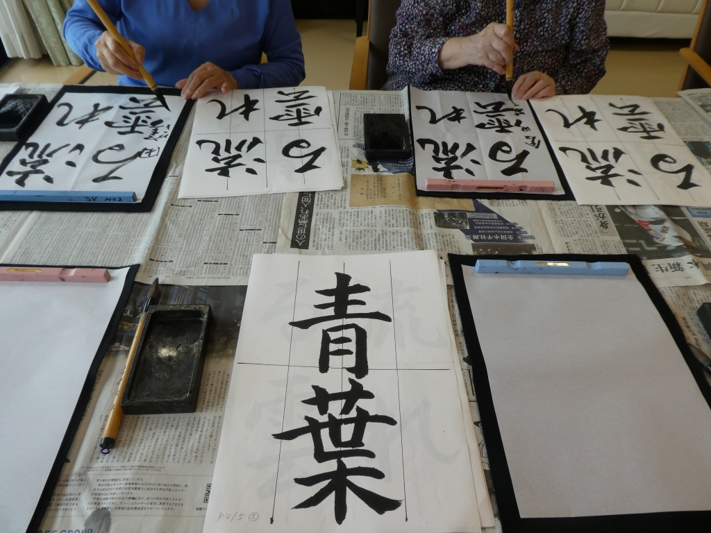 5月の爽やかなお手本を見ながら今月も、真剣に取り組まれて