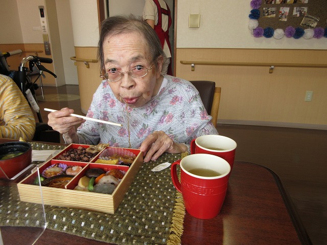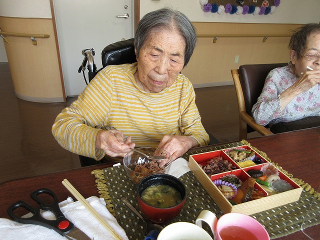 6月1日(水)のお食事会はお赤飯のお弁当でした。