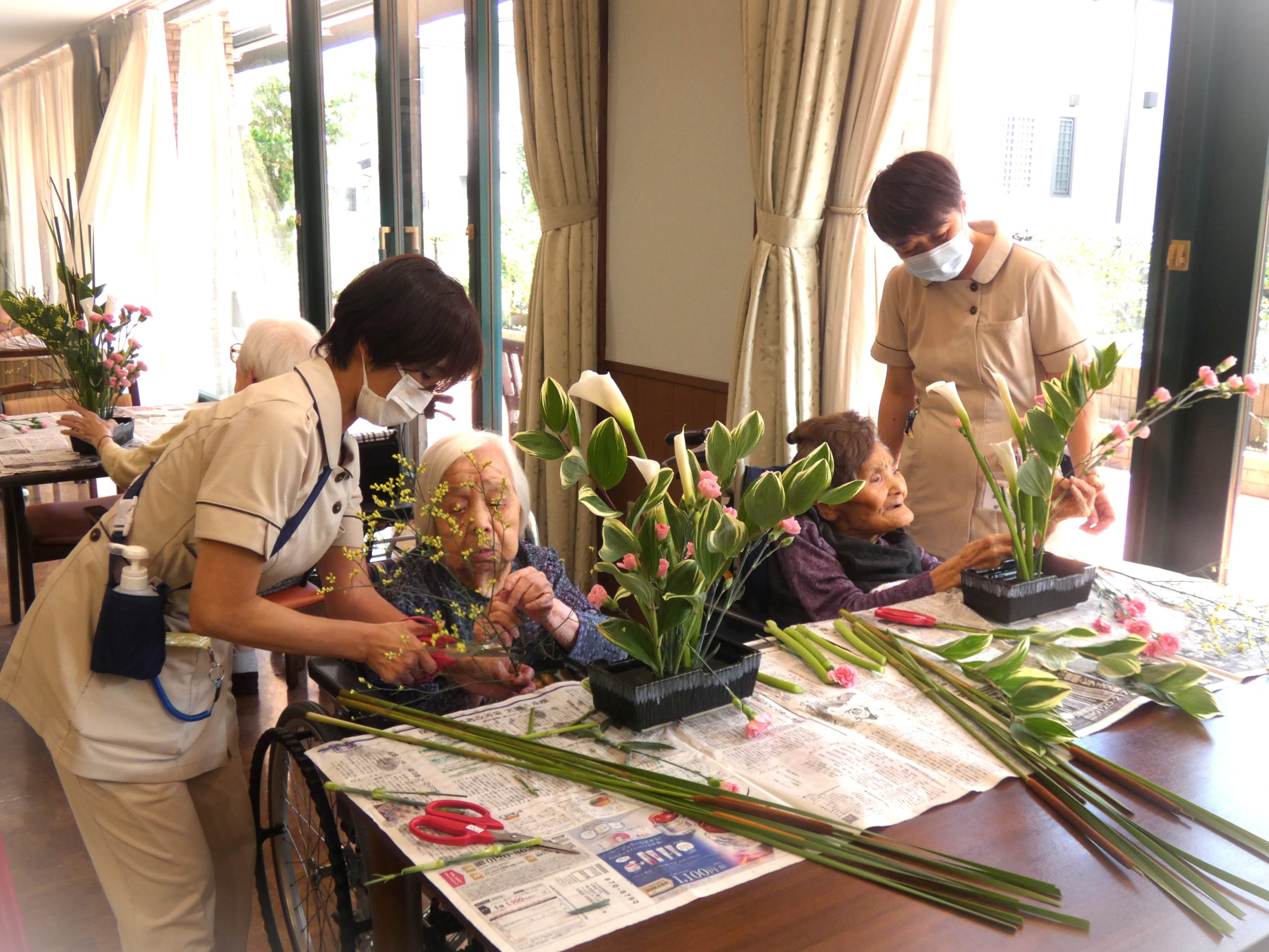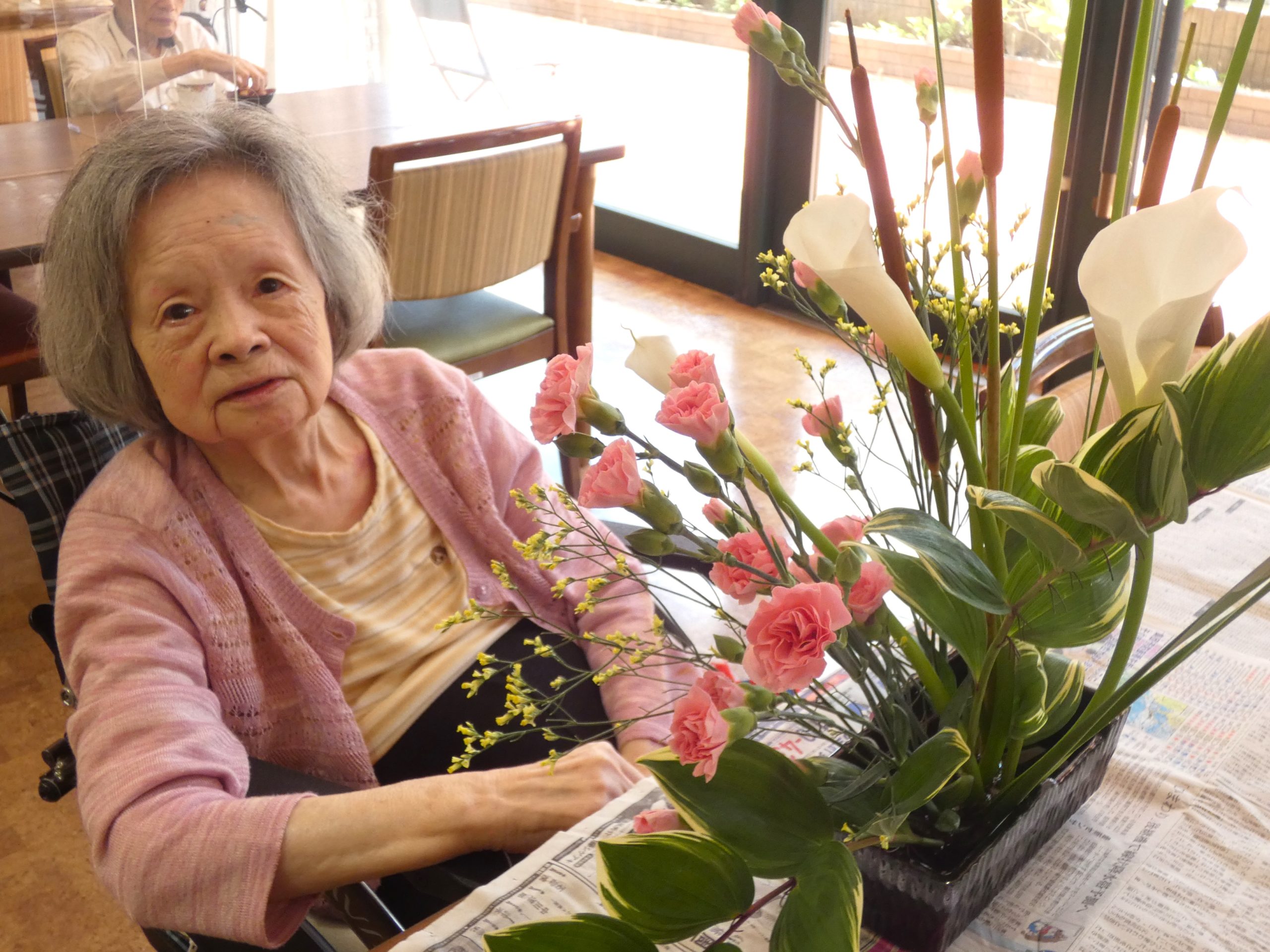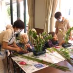 皆様、ピンクのカーネーションを主役にサワサワとお花を活け、ガマの穂でワンポイント✨