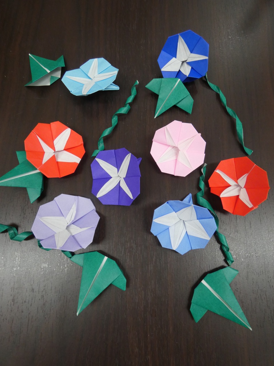 6月8日(水)本日の手作りクラブは、折り紙で朝顔を作っていただきました。