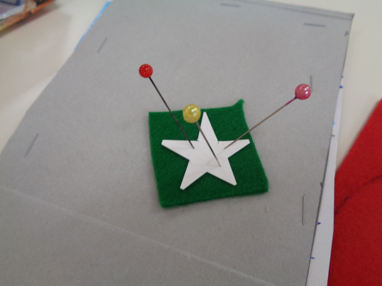 丸く切った赤いフェルトをなみ縫いし、糸をしっかり絞ったら中にたっぷりと綿を詰めます。綿を詰めようとすると綿が上手く収まらず…