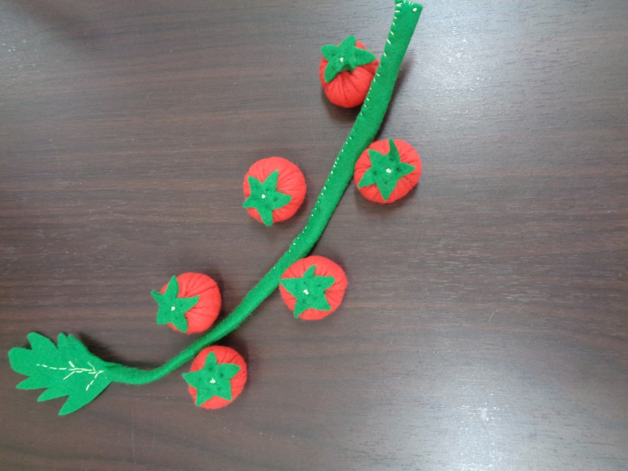ヘタを縫い付けて完成です♪可愛いミニトマトが出来ました!