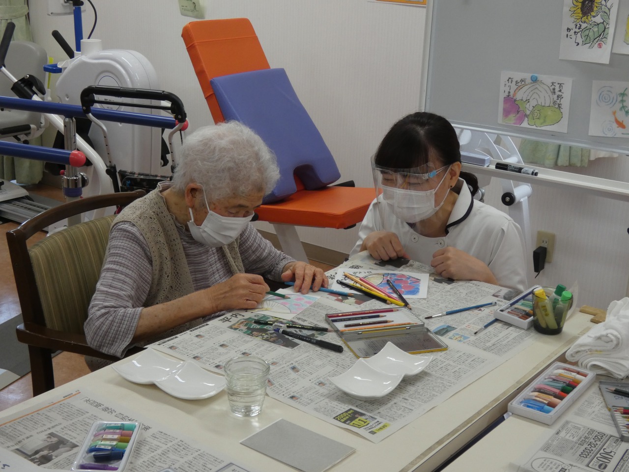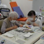 描き出してみると色鉛筆を何本も手に持ち、まるで絵描きさんの様に描いておられました!