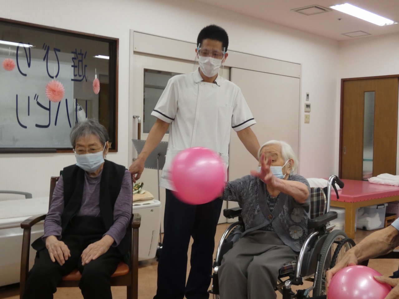 7月6日(水)本日は日野リハビリ室にて運動クラブを開催し、ボールを使った手足の体操を行いました。