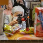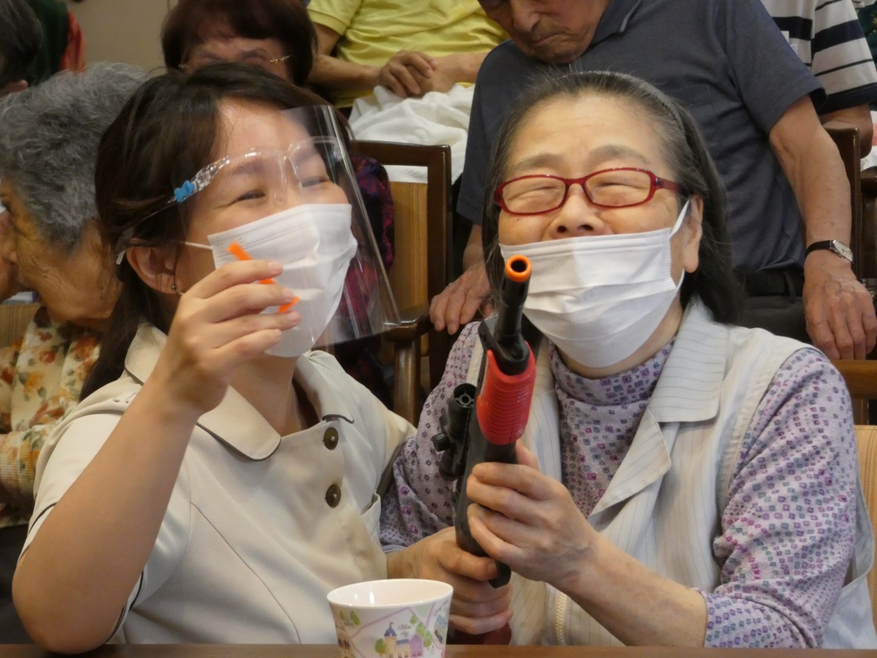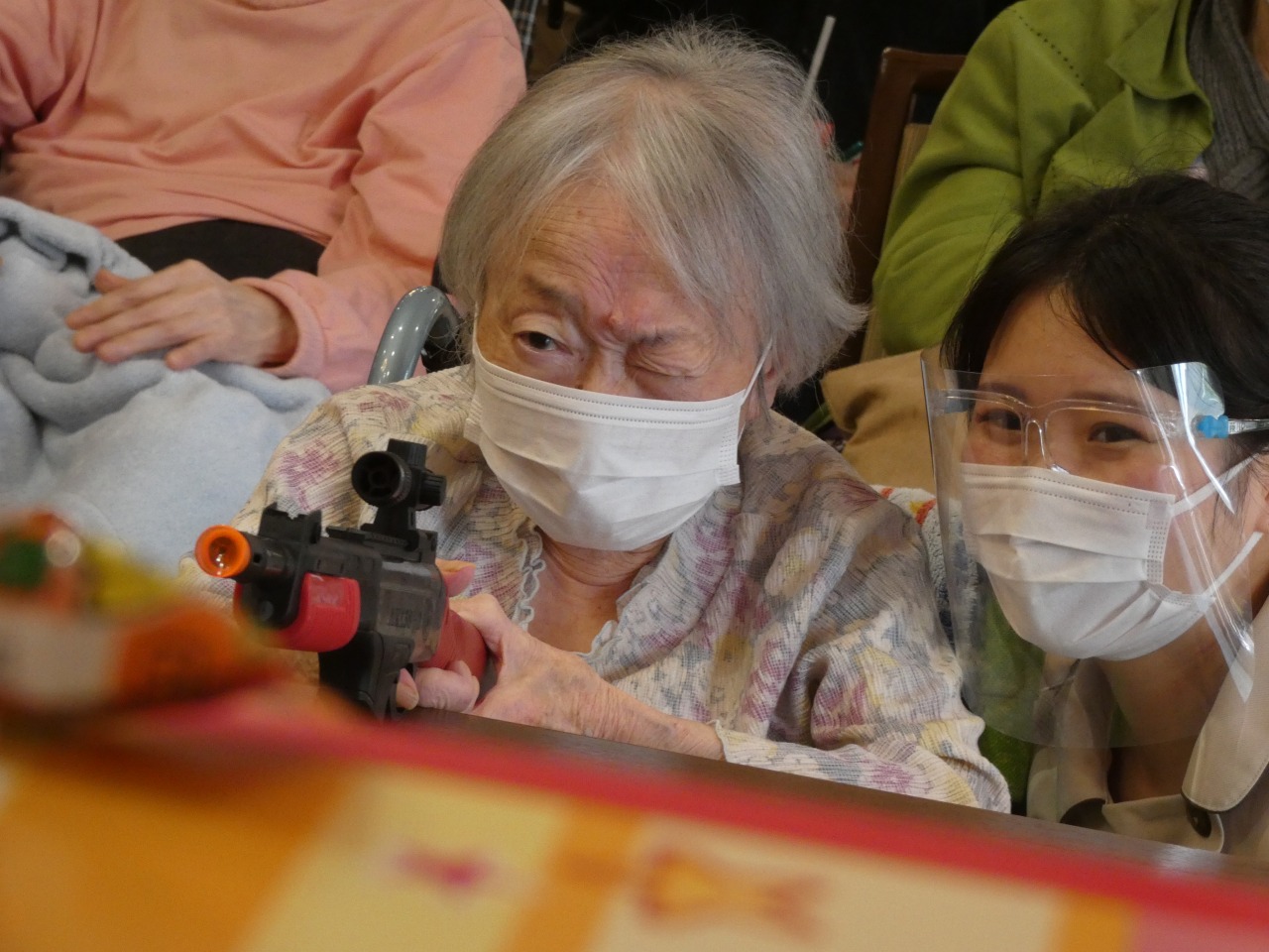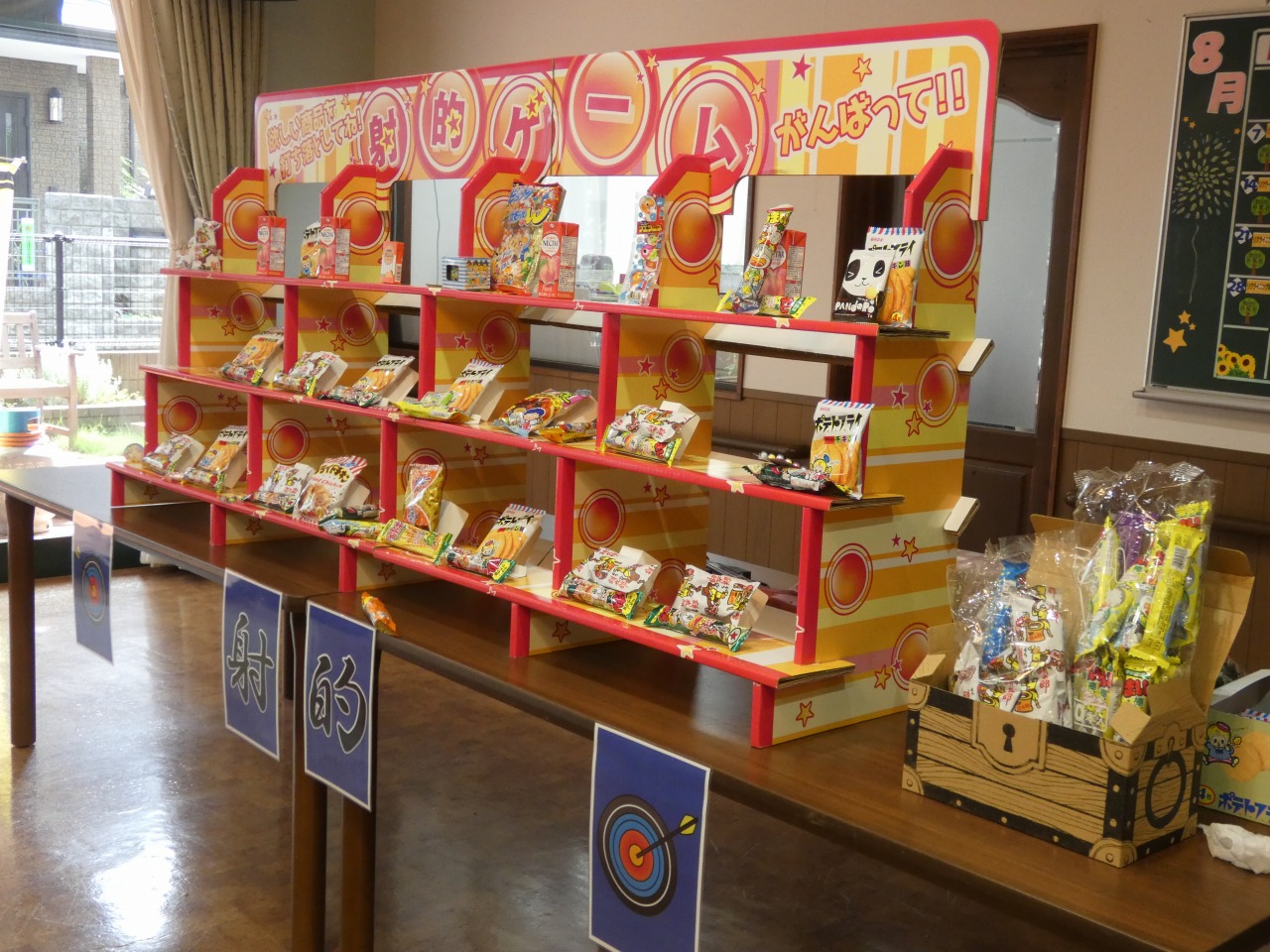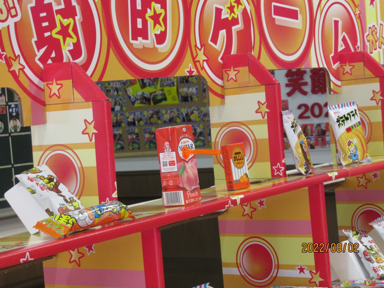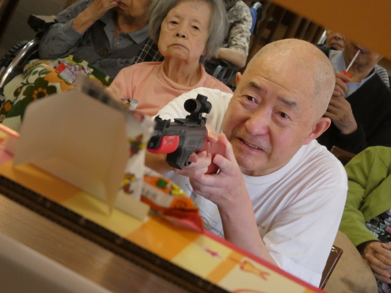 お祭りランチでお腹も落ち着いた午後のレクリエーション、射的‼︎