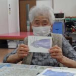 朝顔、キュウリ、茄子など、夏を感じる物を描かれていました。今回は色鉛筆を使う方が多かったのですが、色鉛筆を立てたり、寝かせたり、鉛筆の角度を変えるだけでも色合いが変わってくるので、工夫して色を塗られていました。夏らしい絵手紙の完成です♪