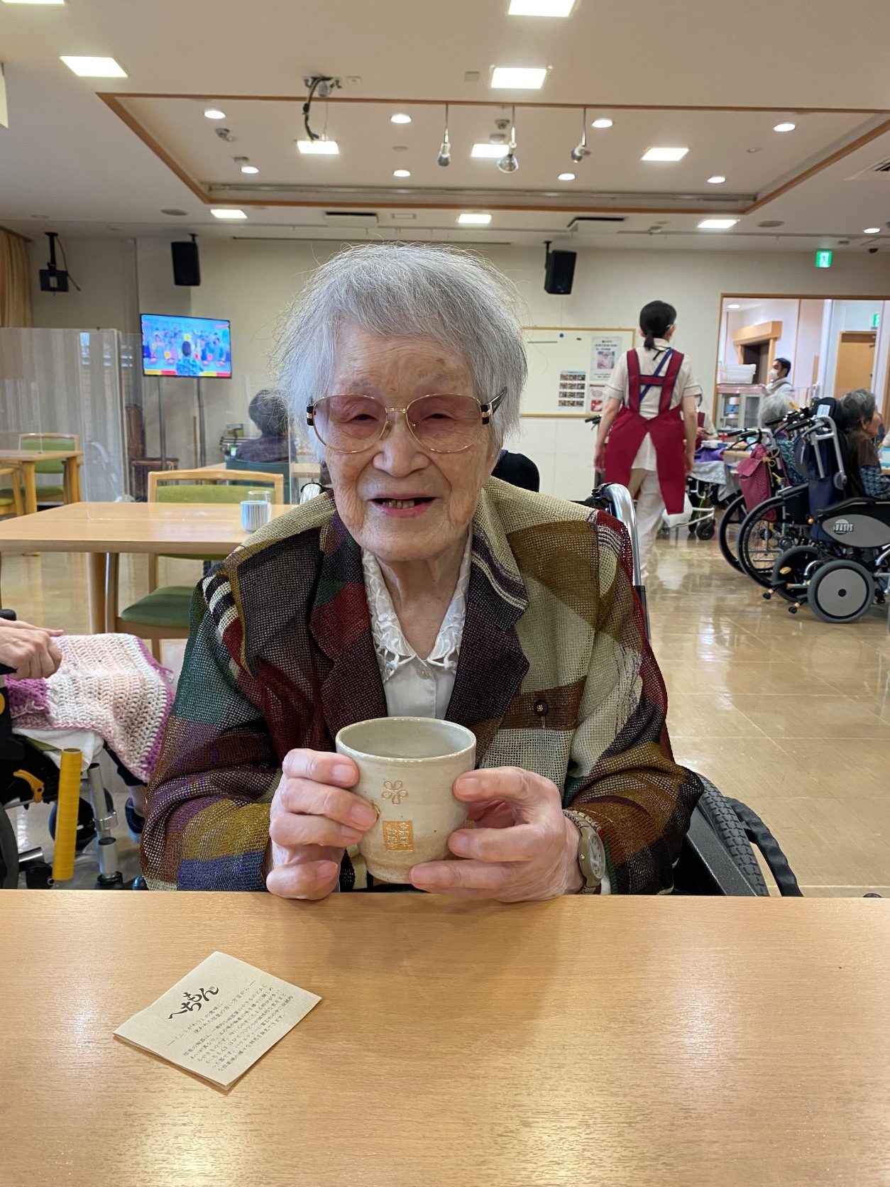 記念に名前入りの湯のみを送らせて頂き、ご本人様も大変喜ばれておりました。