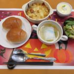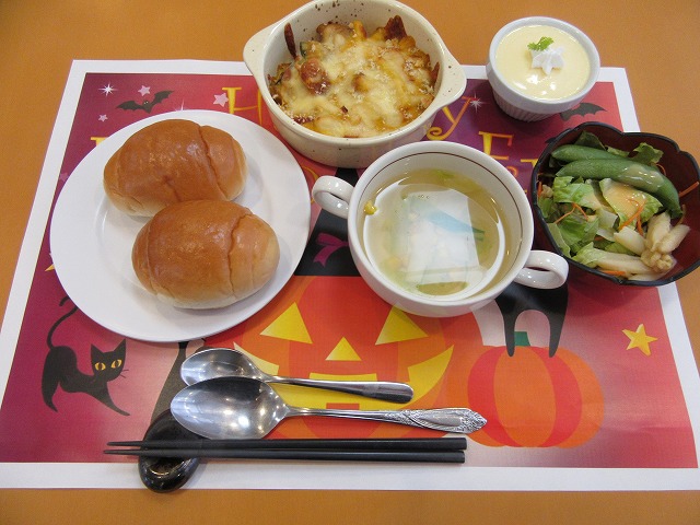 昼食には、かぼちゃグラタンや手作りプリンなど