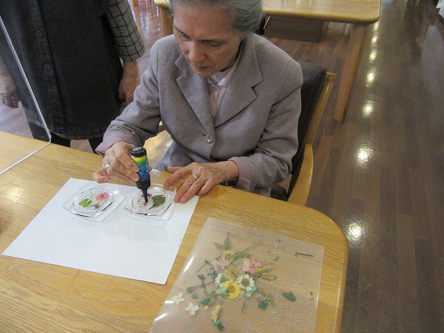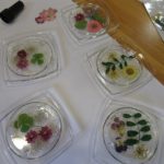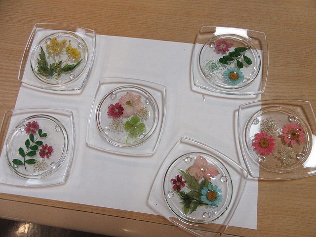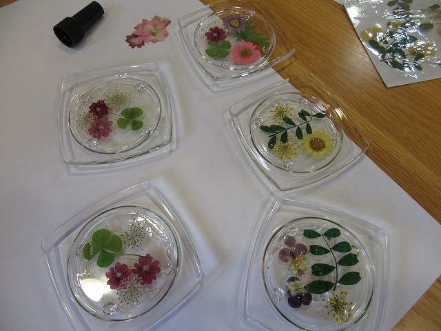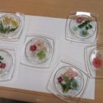 硬化レジン液で押し花を固めコースターを作って頂きました。