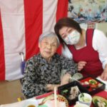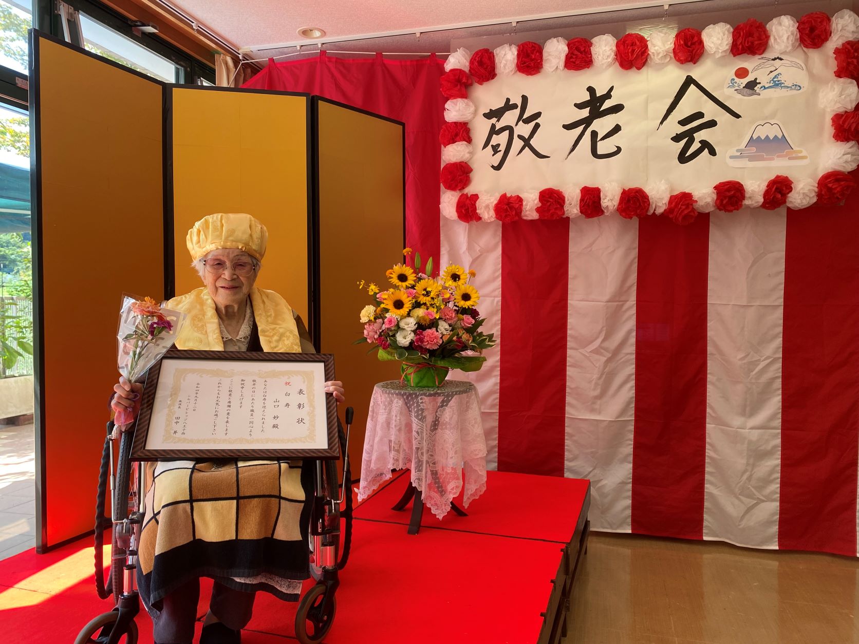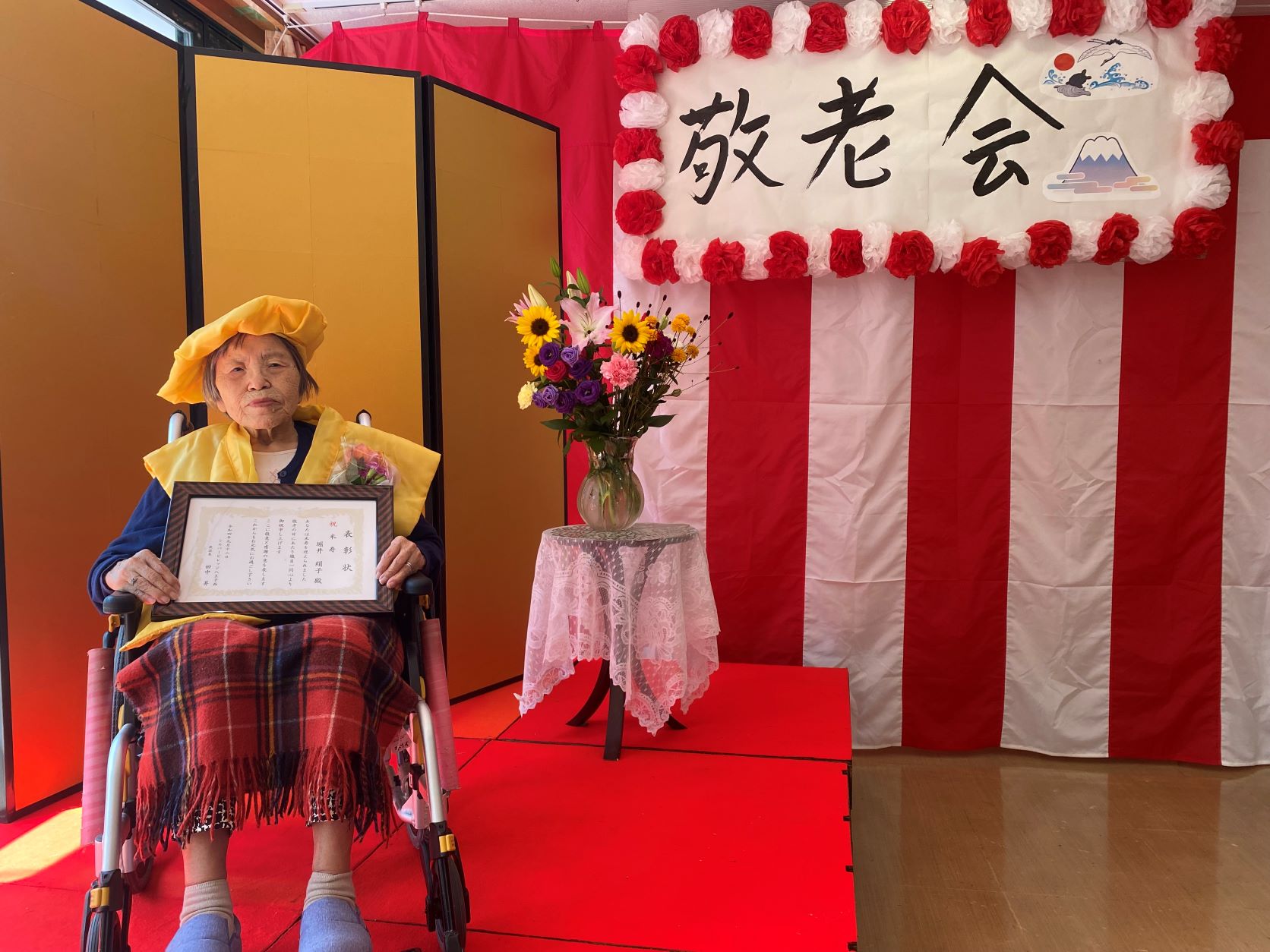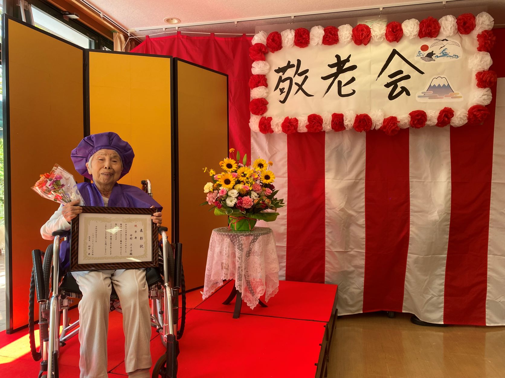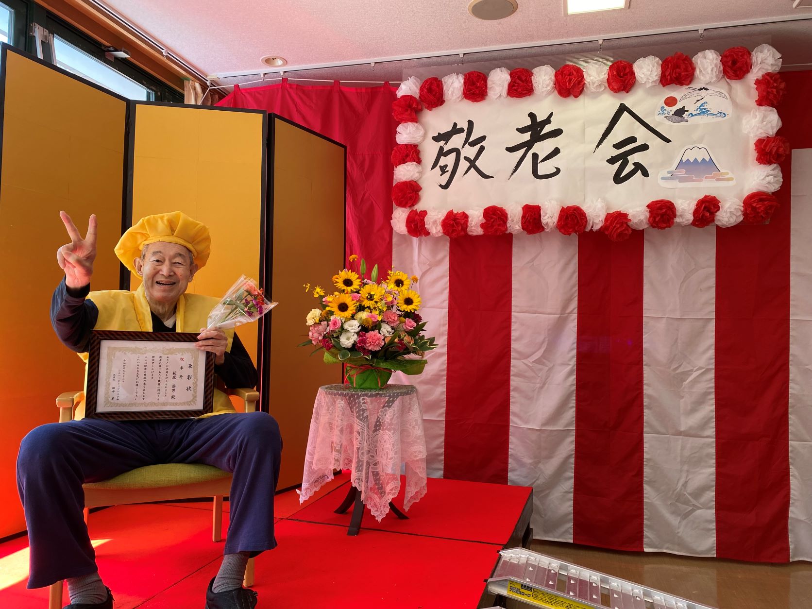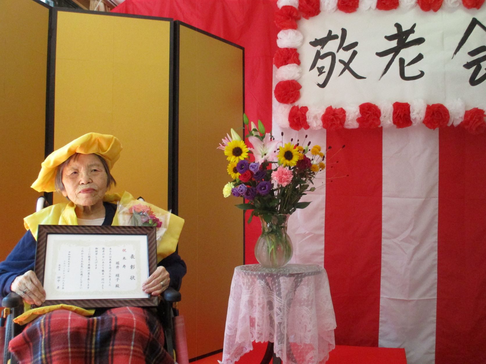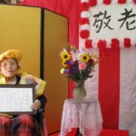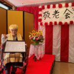 表彰者の方にはそれぞれの色のちゃんちゃんこを着て頂き、