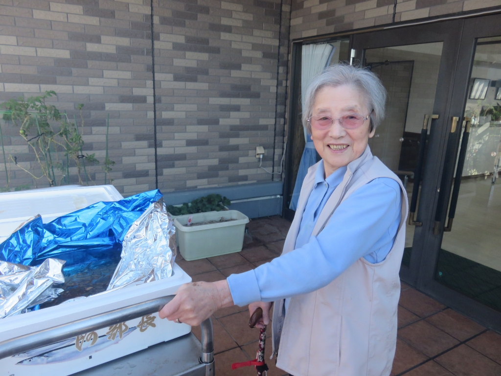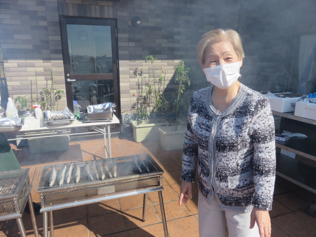 11月2日6階屋上にて炭火で秋刀魚を焼き昼食に皆さんに召し上がって頂きました!!