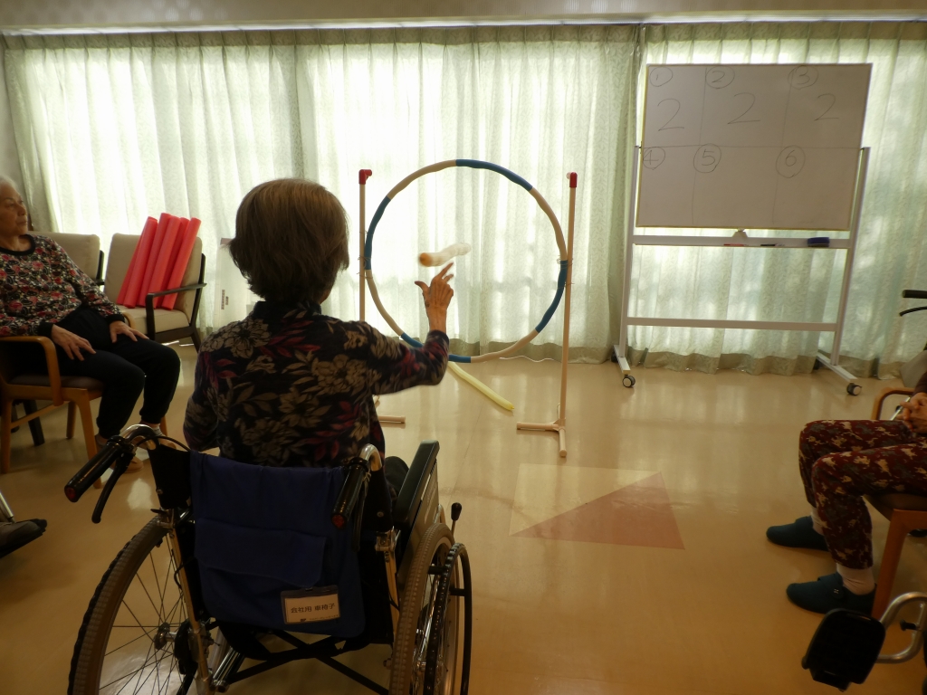 6名のご入居者が参加され、皆様に3回ずつ投げていただき