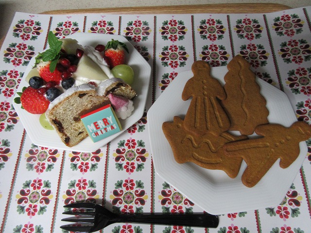 チョコにサンタのグミなどなど。欲張りすぎてお皿が大変な事になり、