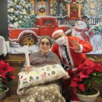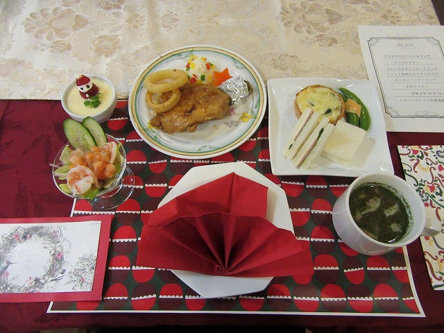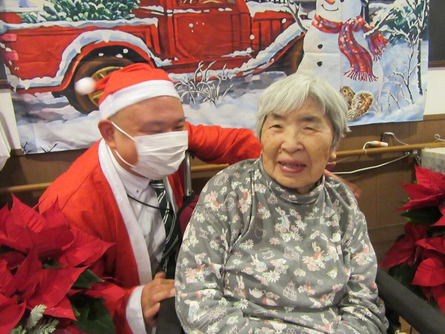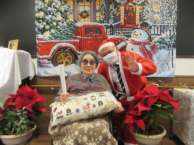 映画鑑賞後はサンタさんからクッションやひざ掛けをプレゼントしました。