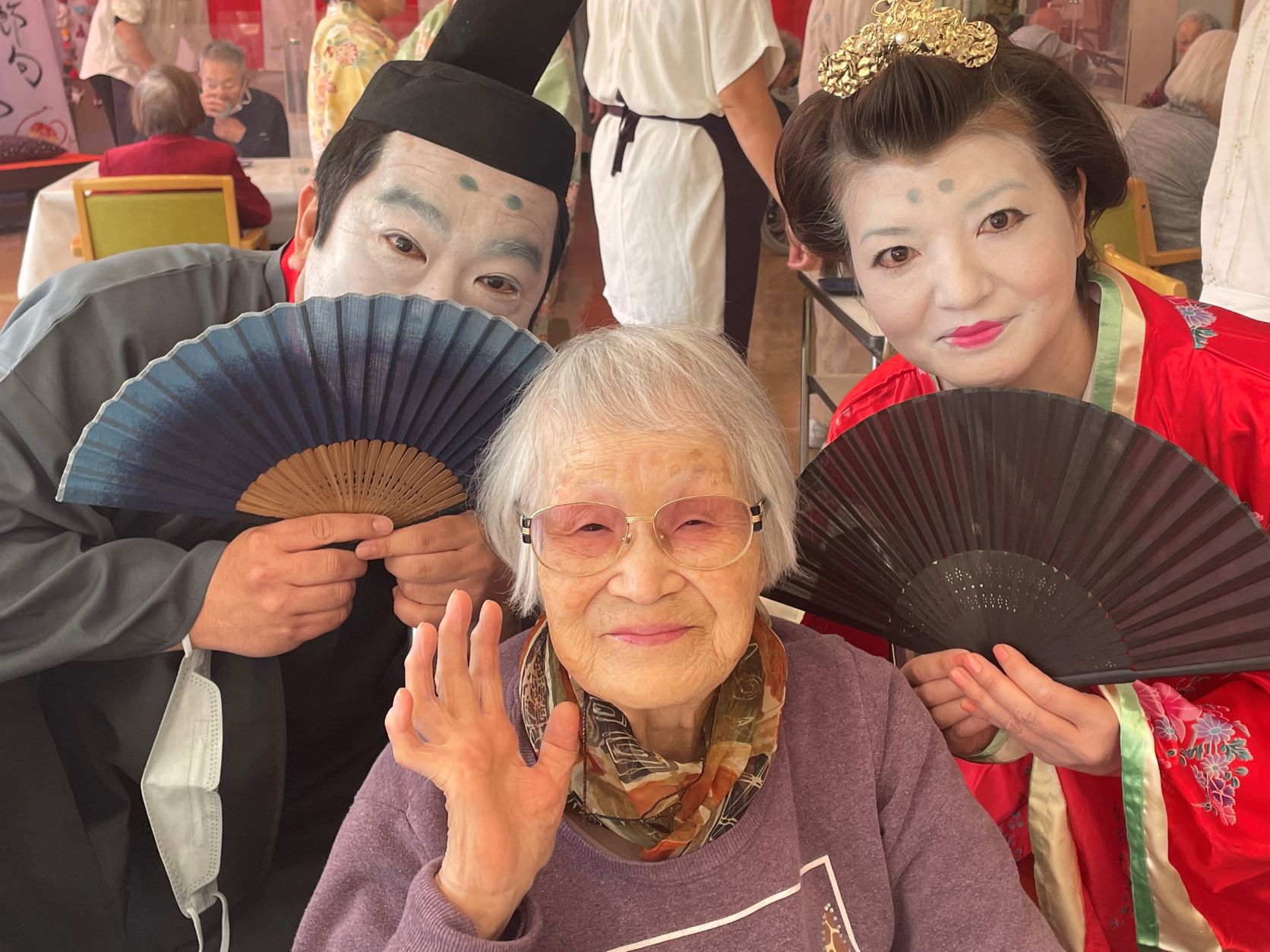 白塗りの職員にご入居者皆様はビックリ!!あるご入居者から「あれじゃない?お笑い芸人のかたでしょ?!」と言う方。