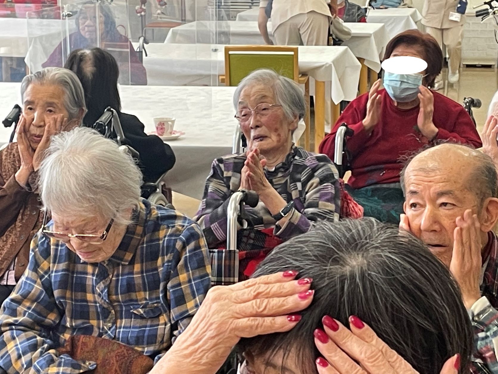 ご入居者の皆様は「春よ来い」「さくら」「チューリップ」等、歌詞を見なくても覚えているご様子(^^)