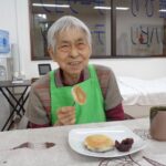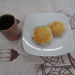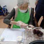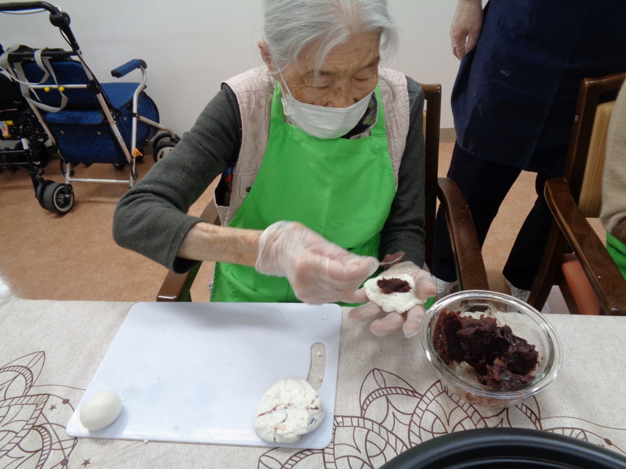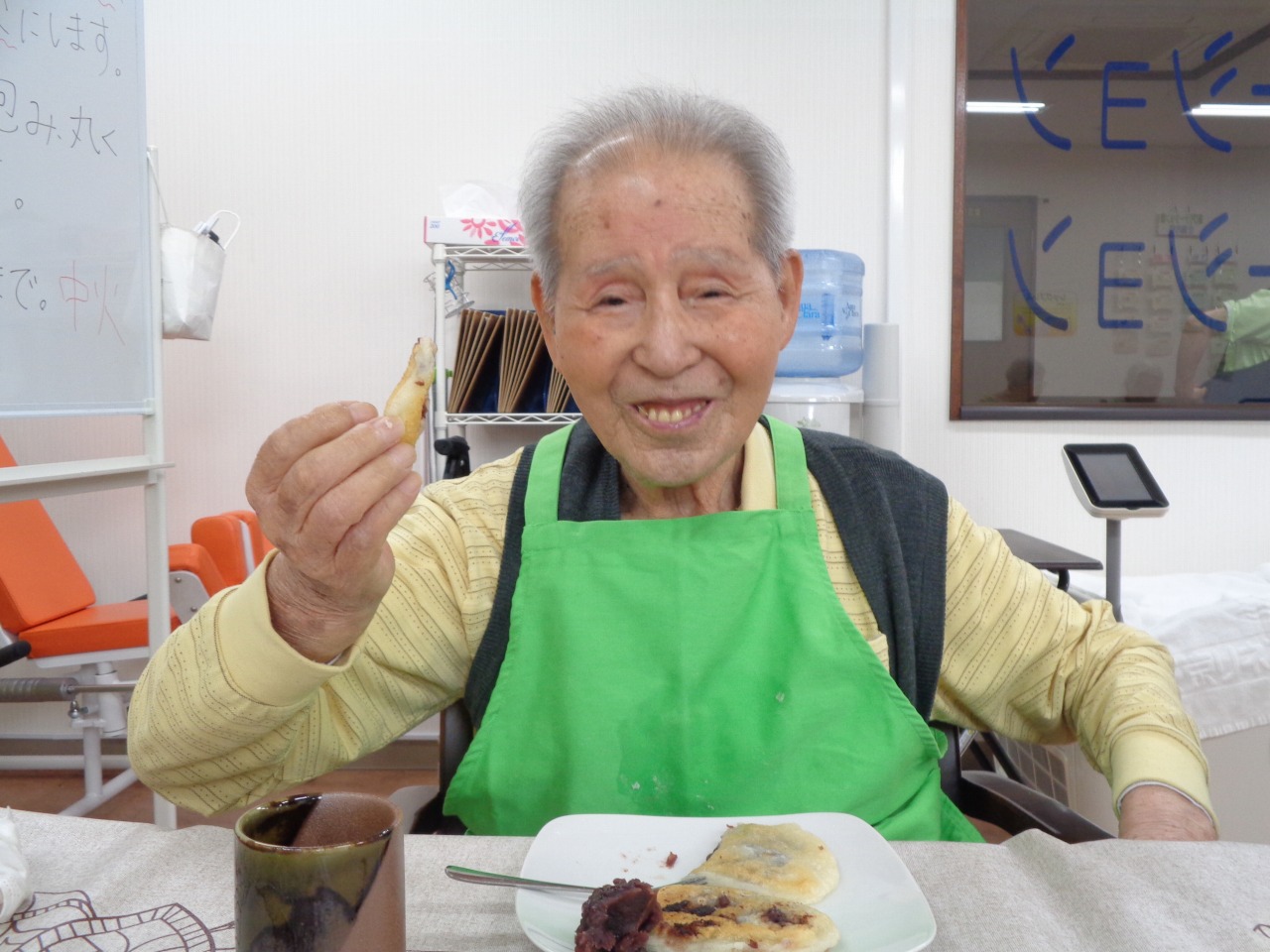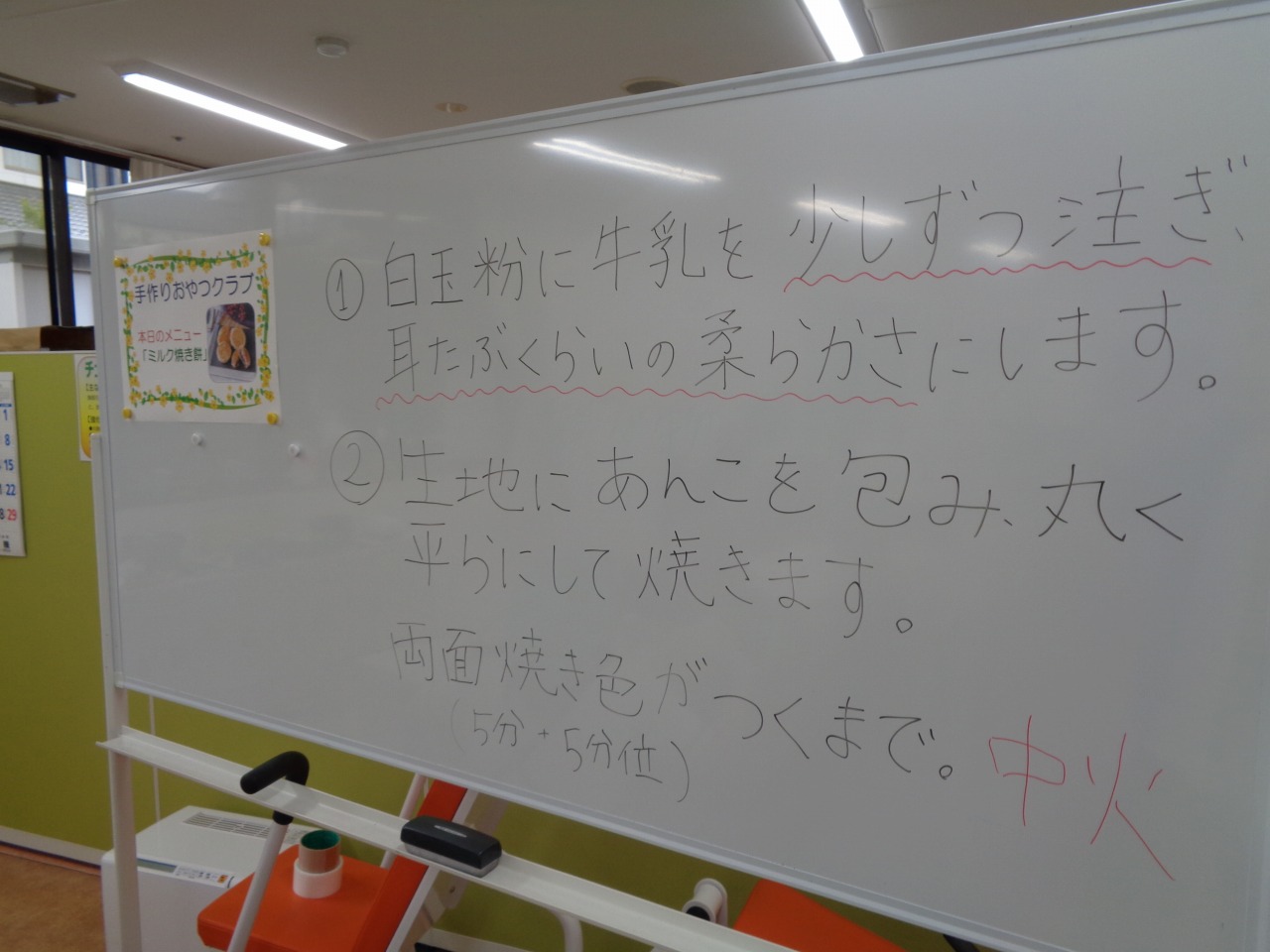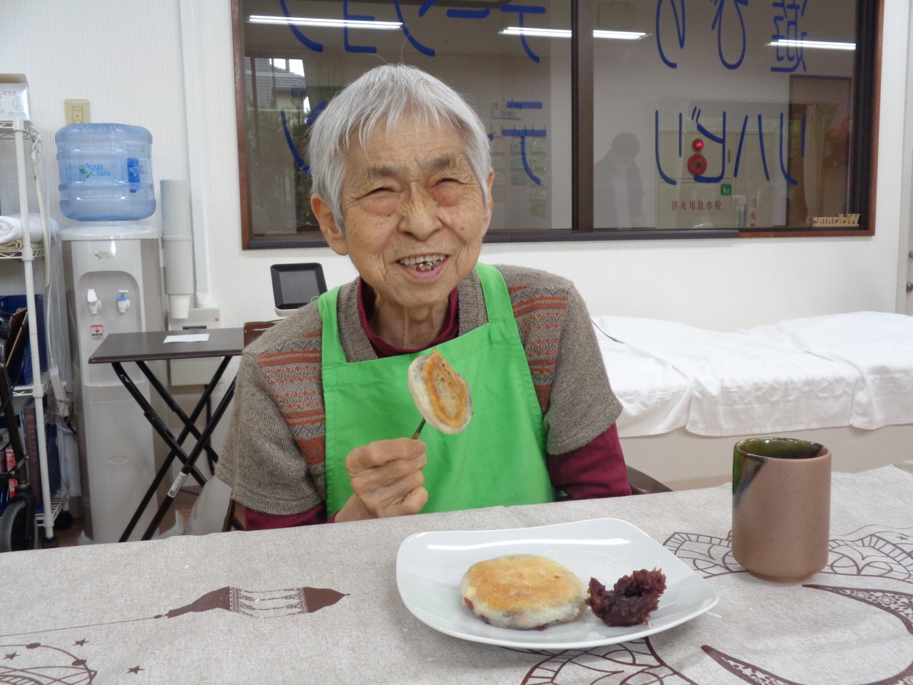 4月7日(金)、本日のメニューは「ミルク焼き餅」です!生地作りに初めて白玉粉を使いました。