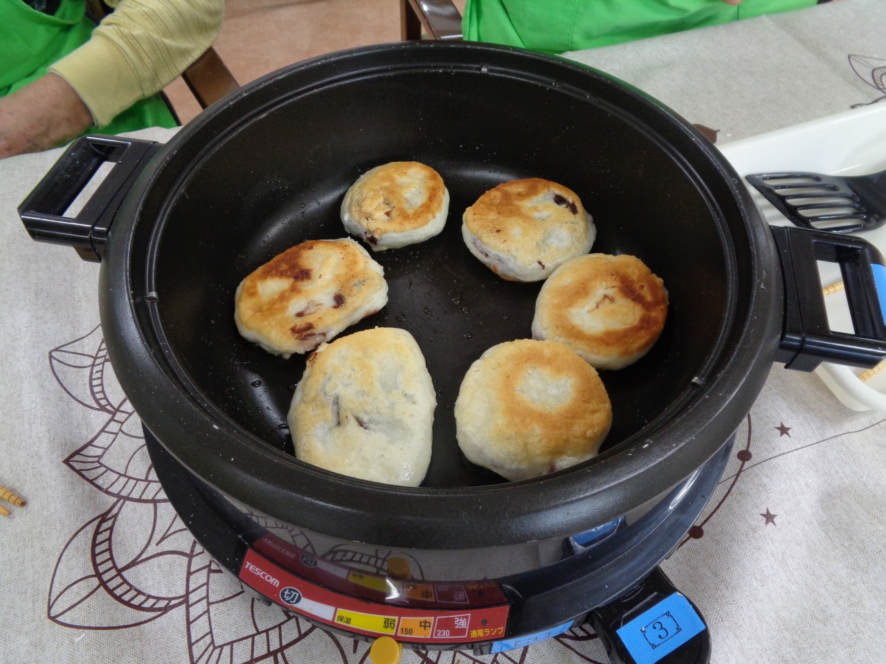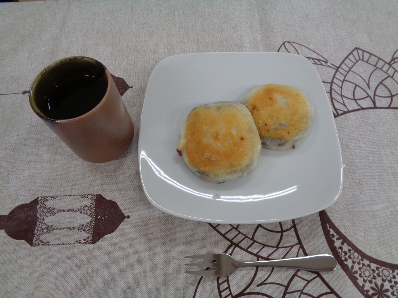 生地が出来たらあんこを包み、平らにして焼くだけです♪