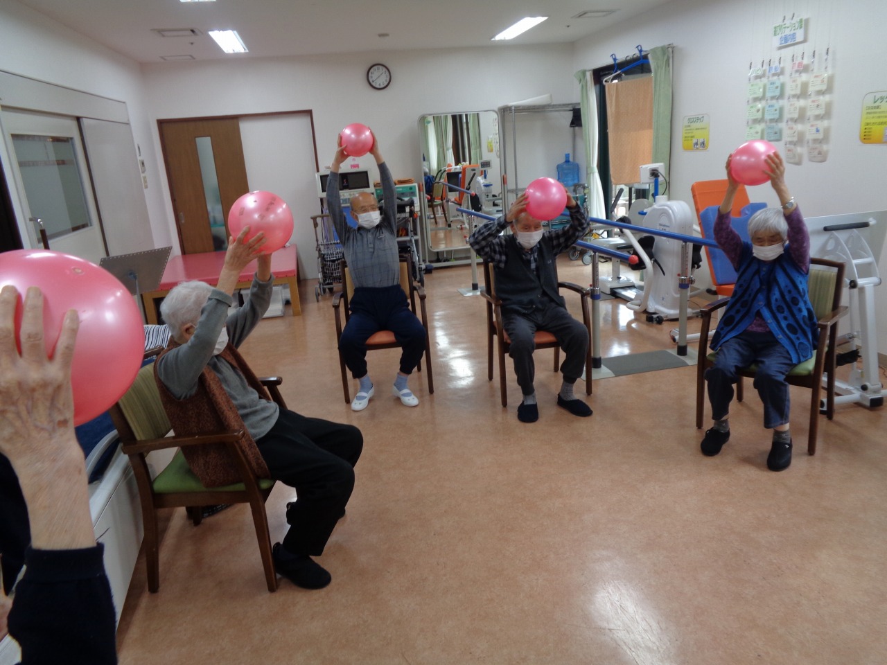本日は日野リハビリ室にて運動クラブを開催し、ボール運動を行いました。