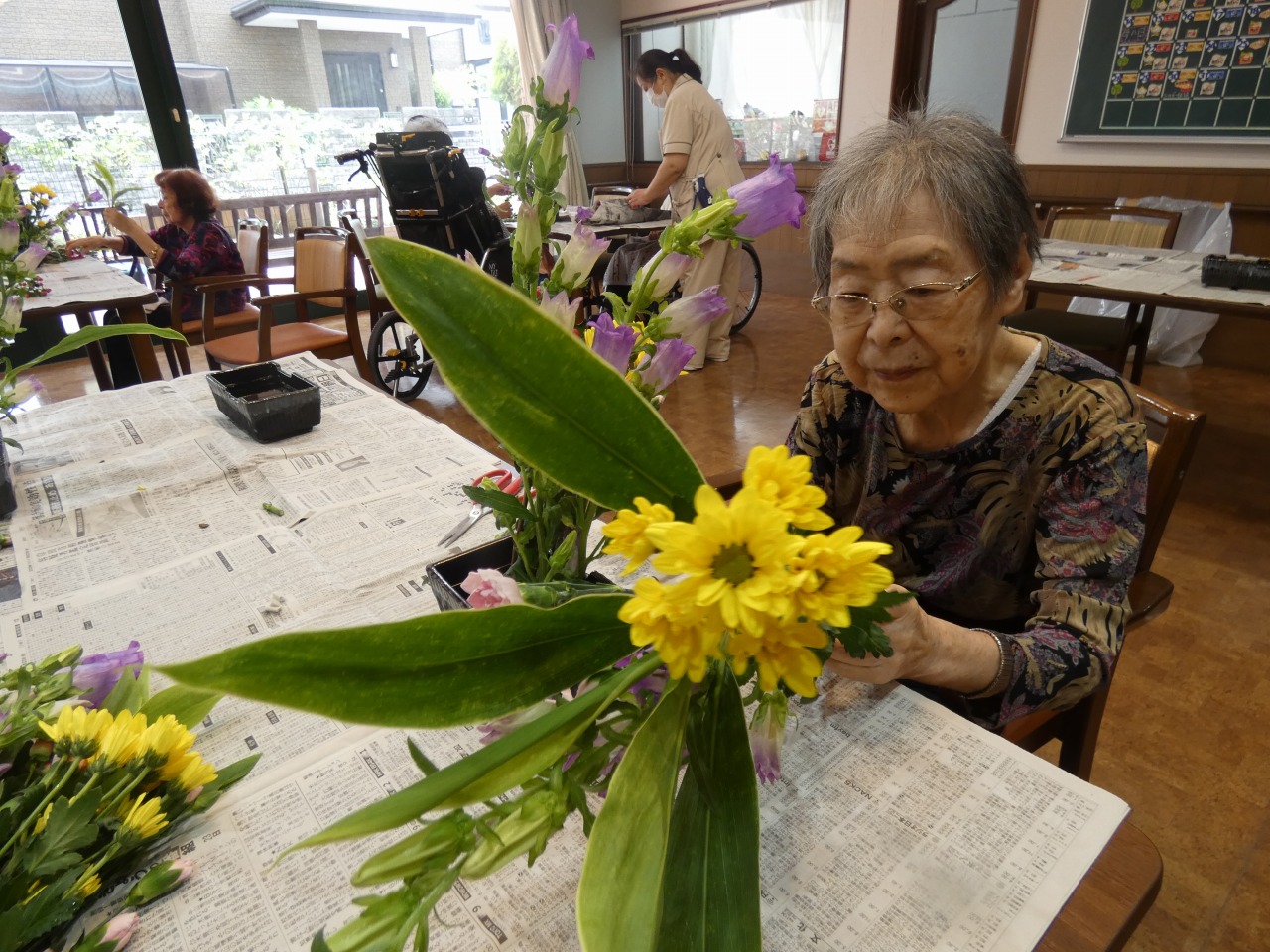 今回の活け花も色とりどりの花です!